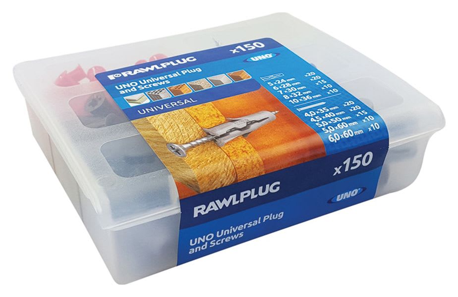Rawlplug Uno Universal Mixed Wall Plug & Screw case - 150 Pack