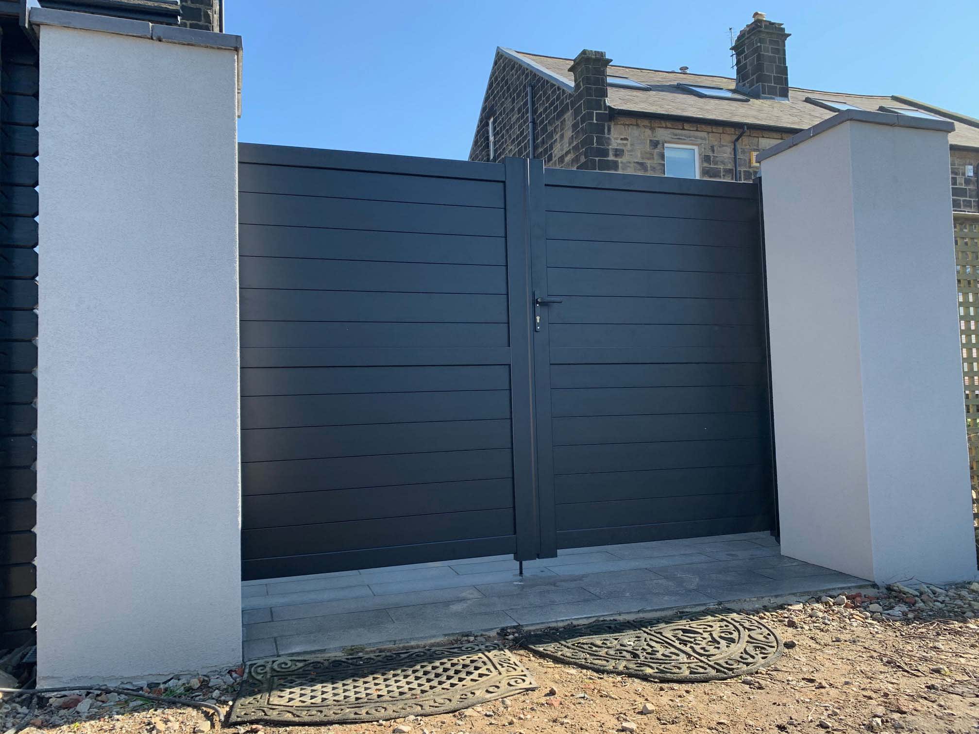 Readymade Anthracite Grey Aluminium Horizontal Double Swing Gate - 3500mm Width