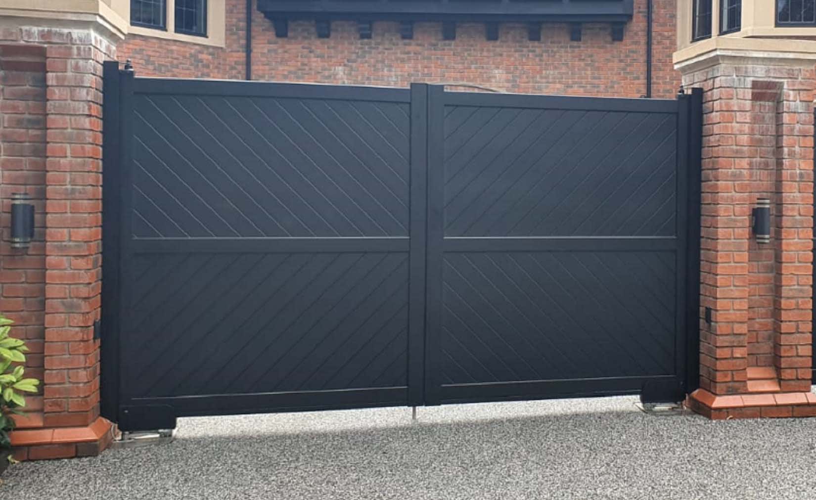 The Flat Top Double Swing Aluminium Driveway Gate with diagonal solid infill by Readymade is a great option to ensure the maximum protection and full privacy of your property. Made from aluminium which makes this gate very strong, it is also lightweight which makes it a versatile material. Includes 4 x large wall mounted hinges and 2 x floor mounted hinges. Lock and latch not included. Manual lock and latch pack is sold separately under product code 267180.