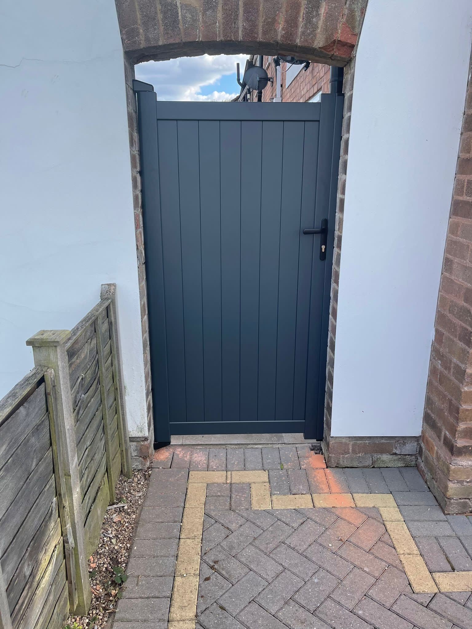 The Flat Top Aluminium Pedestrian Gate with vertical solid infill by Readymade makes the perfect garden gate. It is a great option to ensure the maximum protection and full privacy of your property. Made from aluminium which makes this gate very strong, it is also lightweight which makes it a versatile material. Includes as standard, lock and handles, full-length lock keep, 2 x adjustable wall mounted and 1 x floor mounted hinges.