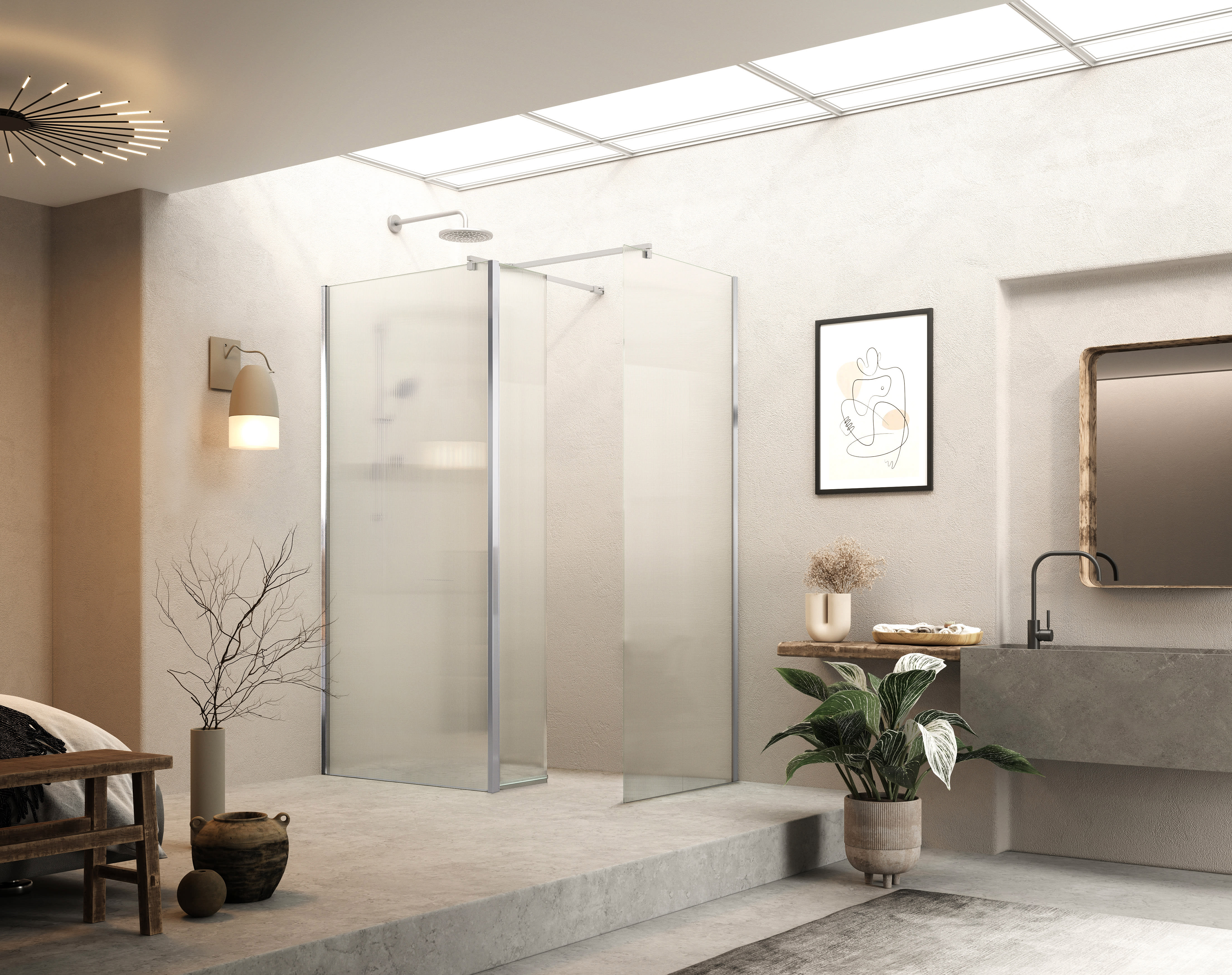 These fluted glass deflector panels can be added to your wetroom panels to increase the water integrity for your wet room. Featuring an 8mm toughened safety glass and Roman's patented Ultra Care glass treatment. The fluted pivot panel will help to create a full and luxurious showering experience. Compatible with the Roman fluted wet room screen range.
