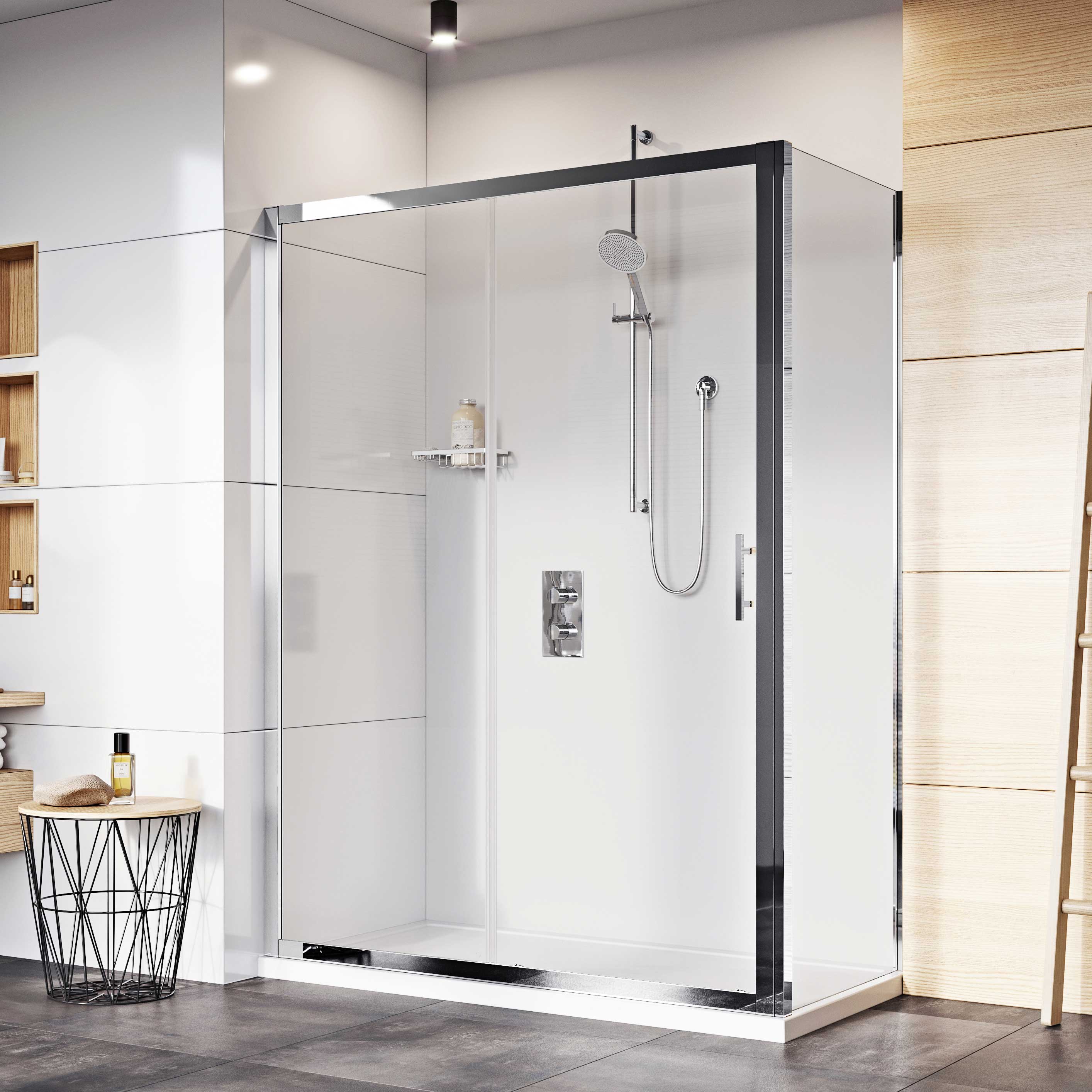 Introduce this impressive sliding shower door into your bathroom with the choice of chrome, brushed brass or matt black metal finish with 8mm ultra care protective glass. Designed to make installation easy with its fast fix system and extremely clever running systems. Create a shower enclosure with side panel fitting by matching up with the Roman Innov8 8mm side panel. The side panel is sold separately.