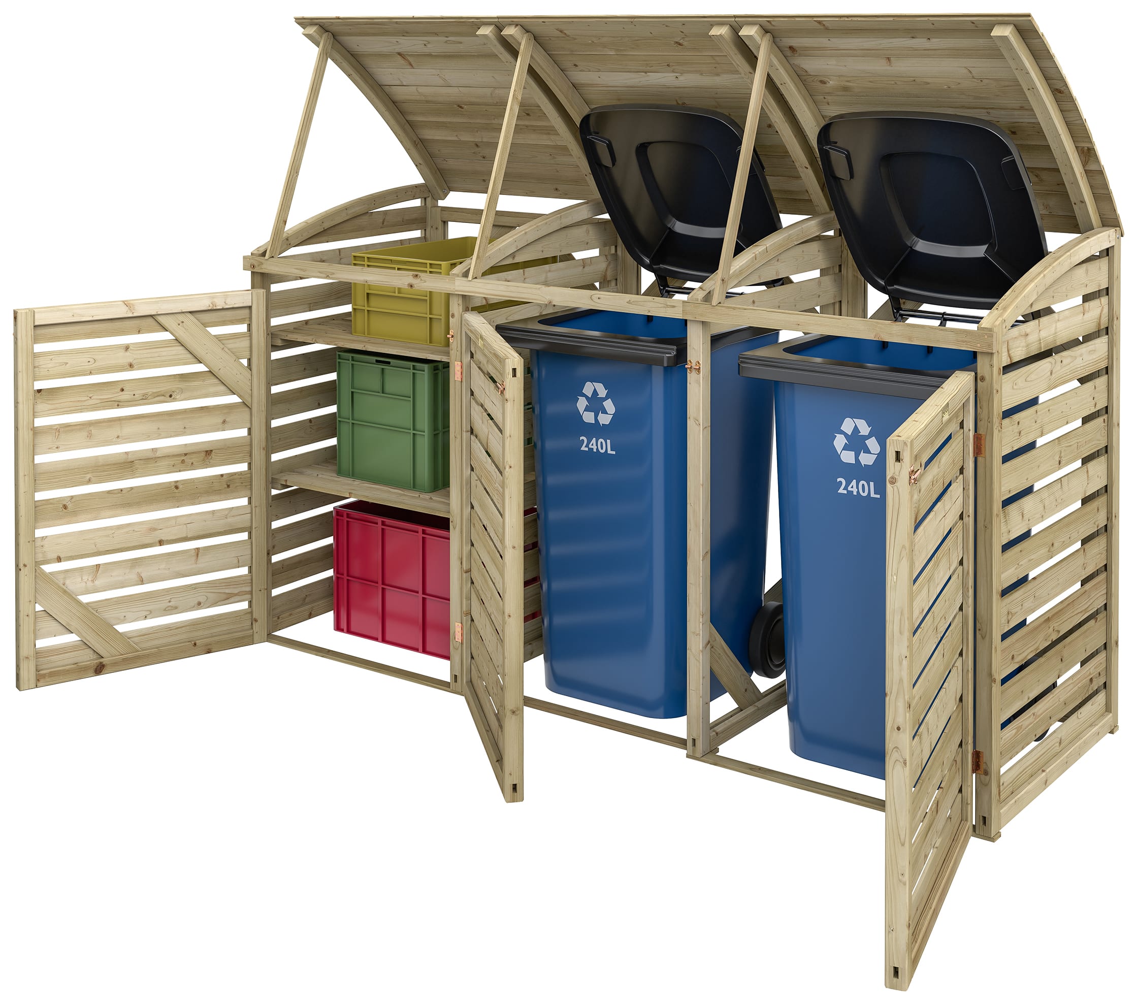 - Two bays for a standard 240L wheelie bin each (Max. overall bin size : H1060mm W:710mm D:740mm)