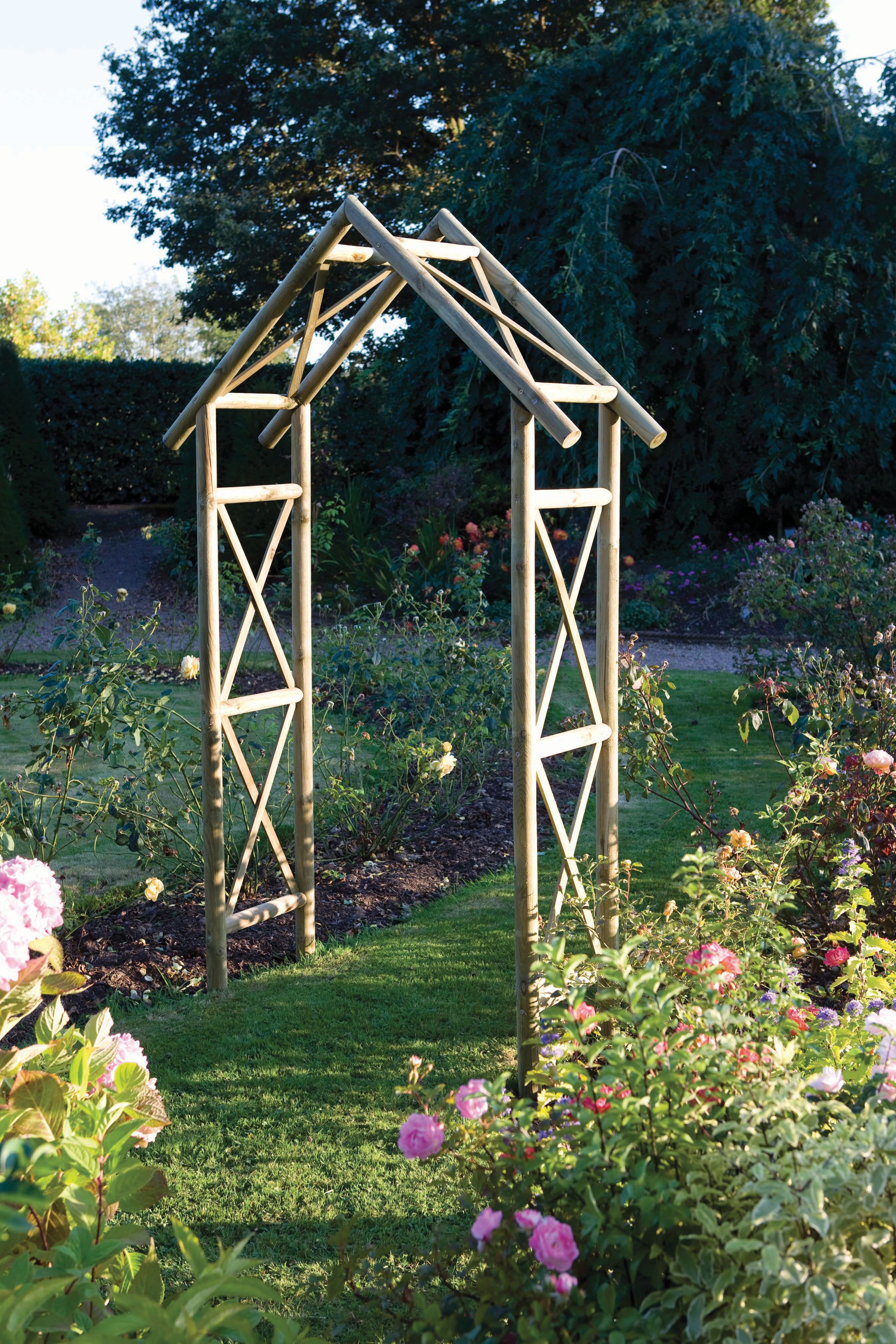 The Rowlinson Classical Criss-Cross Garden Arch is a delightful fusion of rustic charm and timeless elegance designed to elevate your garden ambiance. Featuring an apex style roof and captivating criss-cross lattice work on the sides and top, this seat adds a touch of traditional country cottage allure to any outdoor space, effortlessly transforming even the most suburban garden into a picturesque retreat. Additional dimension information - Footprint (WxD): 1080 x 450mm, Internal Width: 965mm, Post Section Diameter: 58mm.