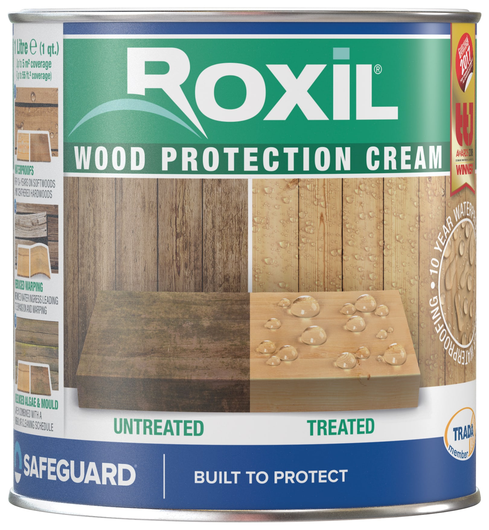 The Roxil Wood Protection Cream is a silicone cream emulsion used to protect vulnerable absorbent wood such as softwood timber and weathered hardwoods whilst retaining a natural appearance. The silicone waterproofs and protects the wood from the undesirable effects of moisture reducing colour loss and the tendency for cracking. Roxil Wood Protection Cream can be applied by brush or roller.