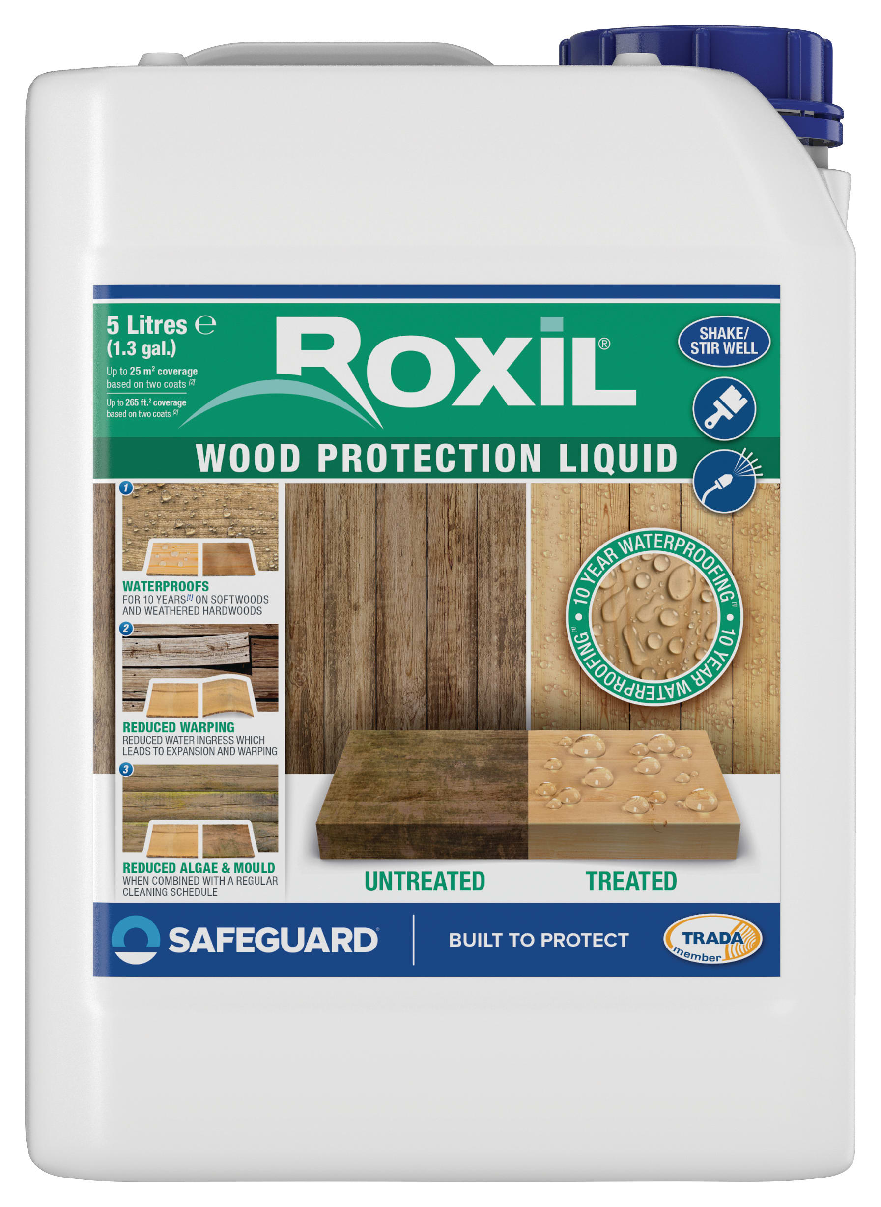 The Roxil Wood Protection Liquid is a liquid, water-based silicone emulsion used to protect timber. The silicone waterproofs the surface and protects the wood from the undesirable effects of moisture which can result in rot and decay. Roxil Wood Protection Liquid can be applied by brush or spray.
