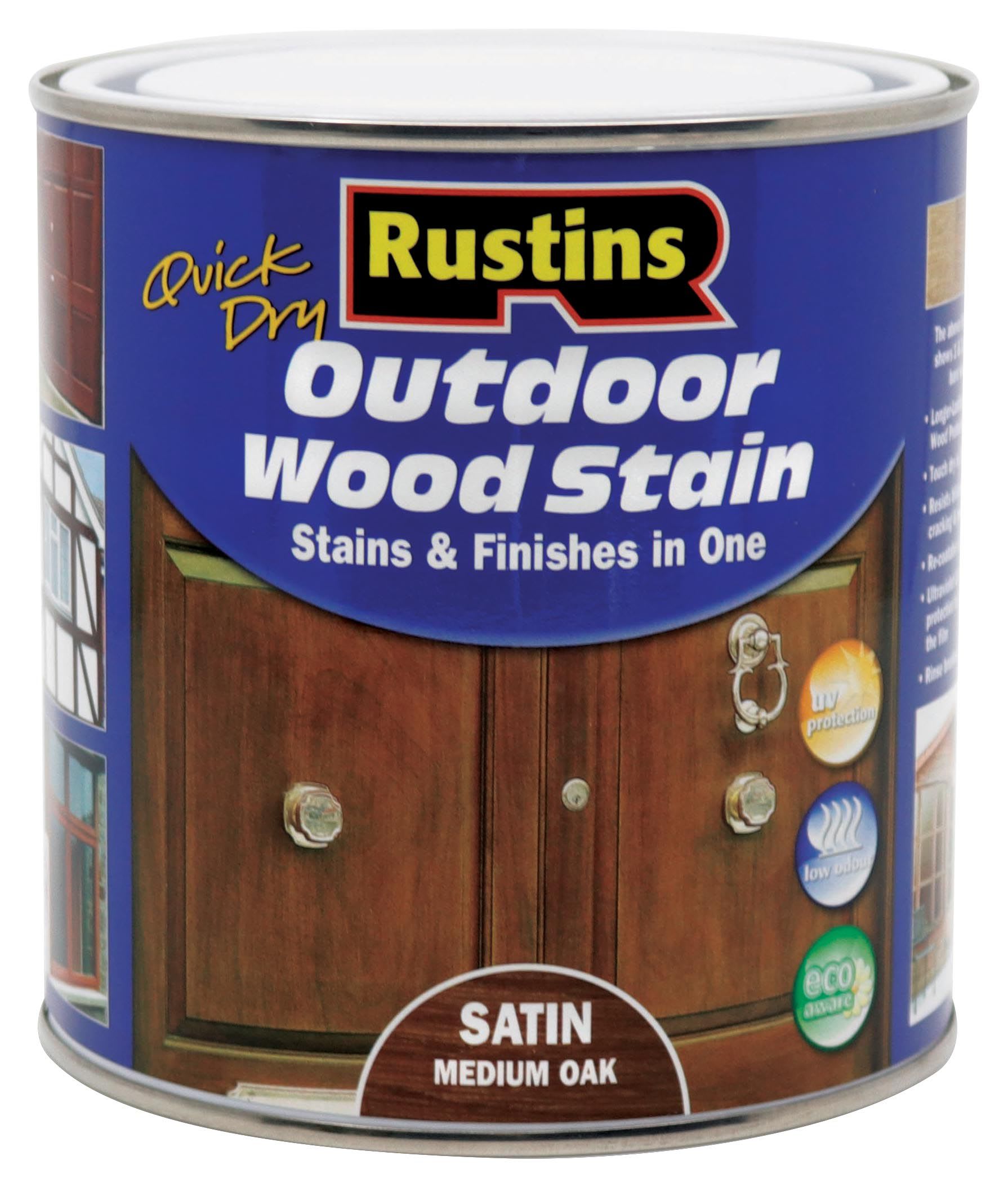 The Rustins Quick Dry Woodstain in the shade Medium Oak is quick drying, very durable and available in satin finish. Gives long lasting protection to all external wood, and is touch dry in 30 minutes, re-coatable in 4 hours. After applying, you can simply clean your brushes with water.