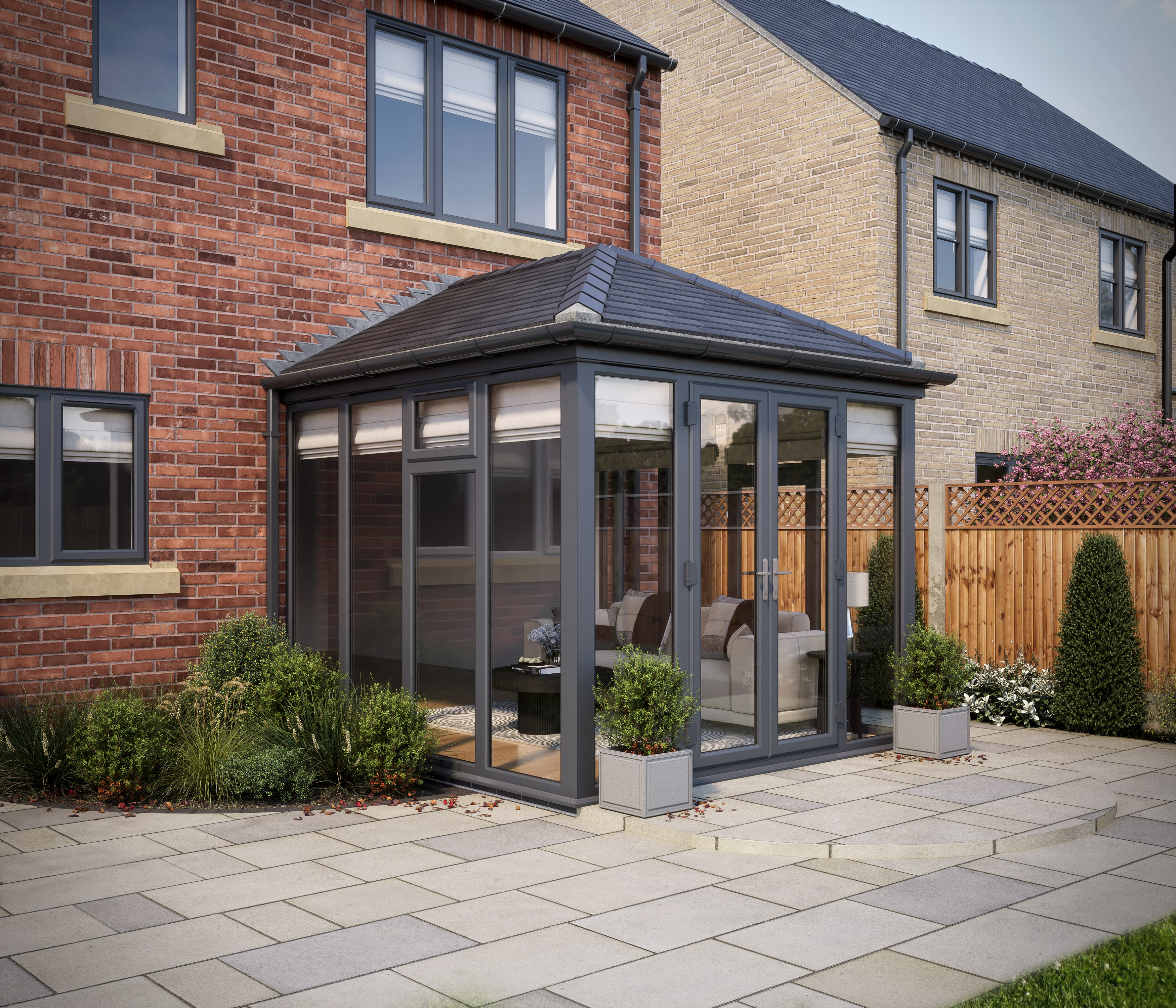 SOLid Roof Full Height Edwardian Conservatory with Grey Frame & Titanium Grey Tiles - 3 x 3m