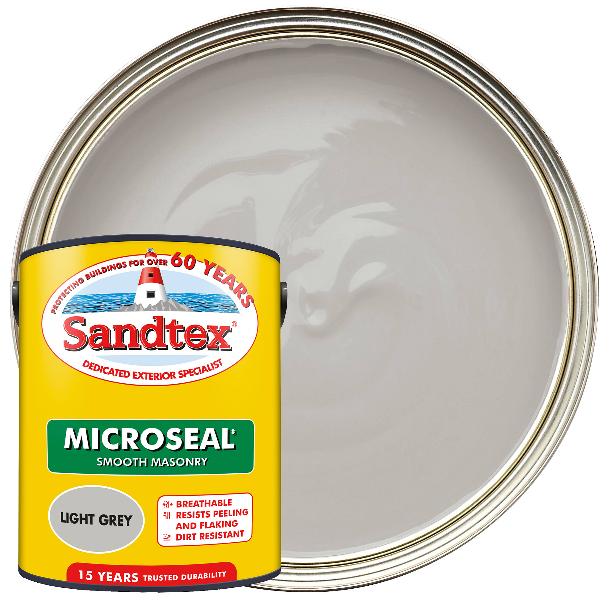 Sandtex Microseal Ultra Smooth Weatherproof Masonry 15 Year Exterior Wall Paint - Light Grey - 5L