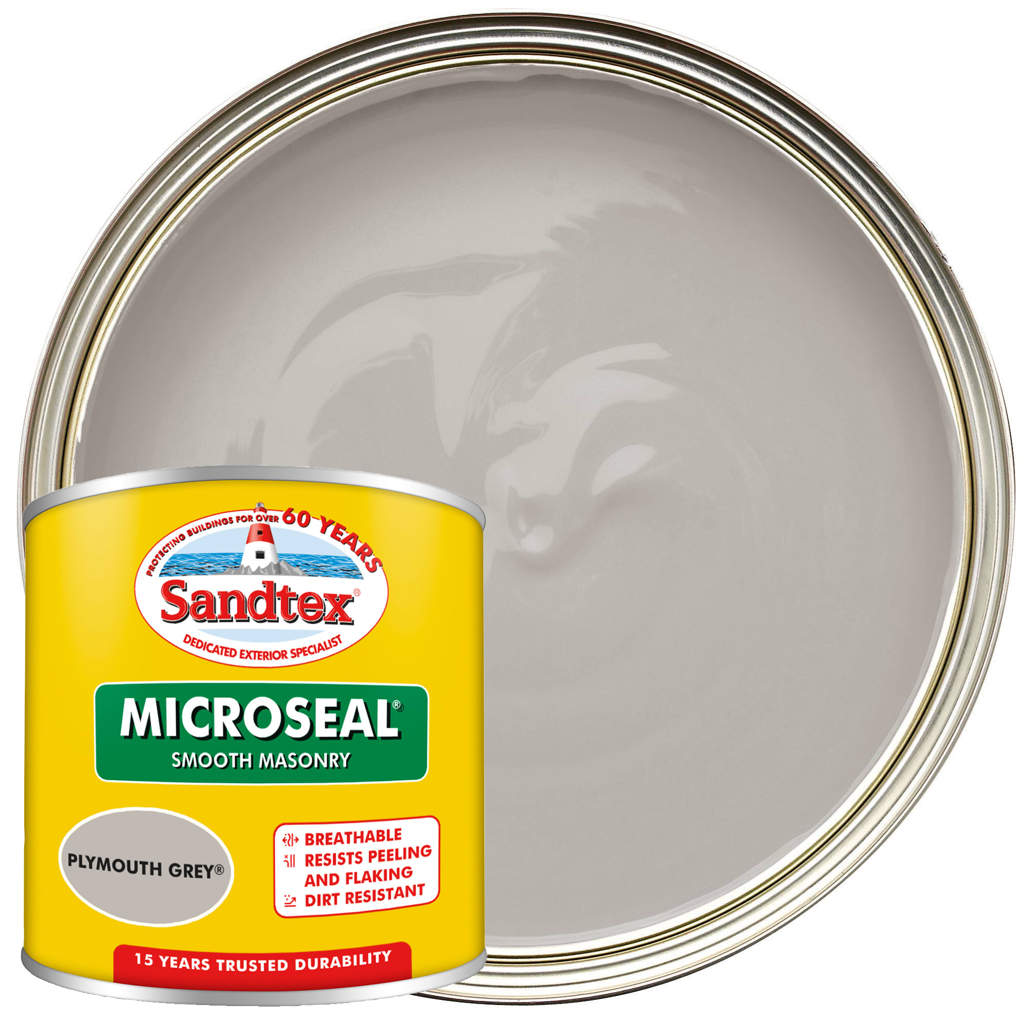 The Sandtex Microseal Ultra Smooth Weatherproof Masonry 15 Year Exterior Wall Paint is a durable and breathable exterior masonry paint that offers up to 15 years of weatherproof protection. Available in Plymouth Grey, this unique shade of light grey masonry paint provides excellent versatility and complete coverage, making it the ideal exterior paint for the outside of your house.