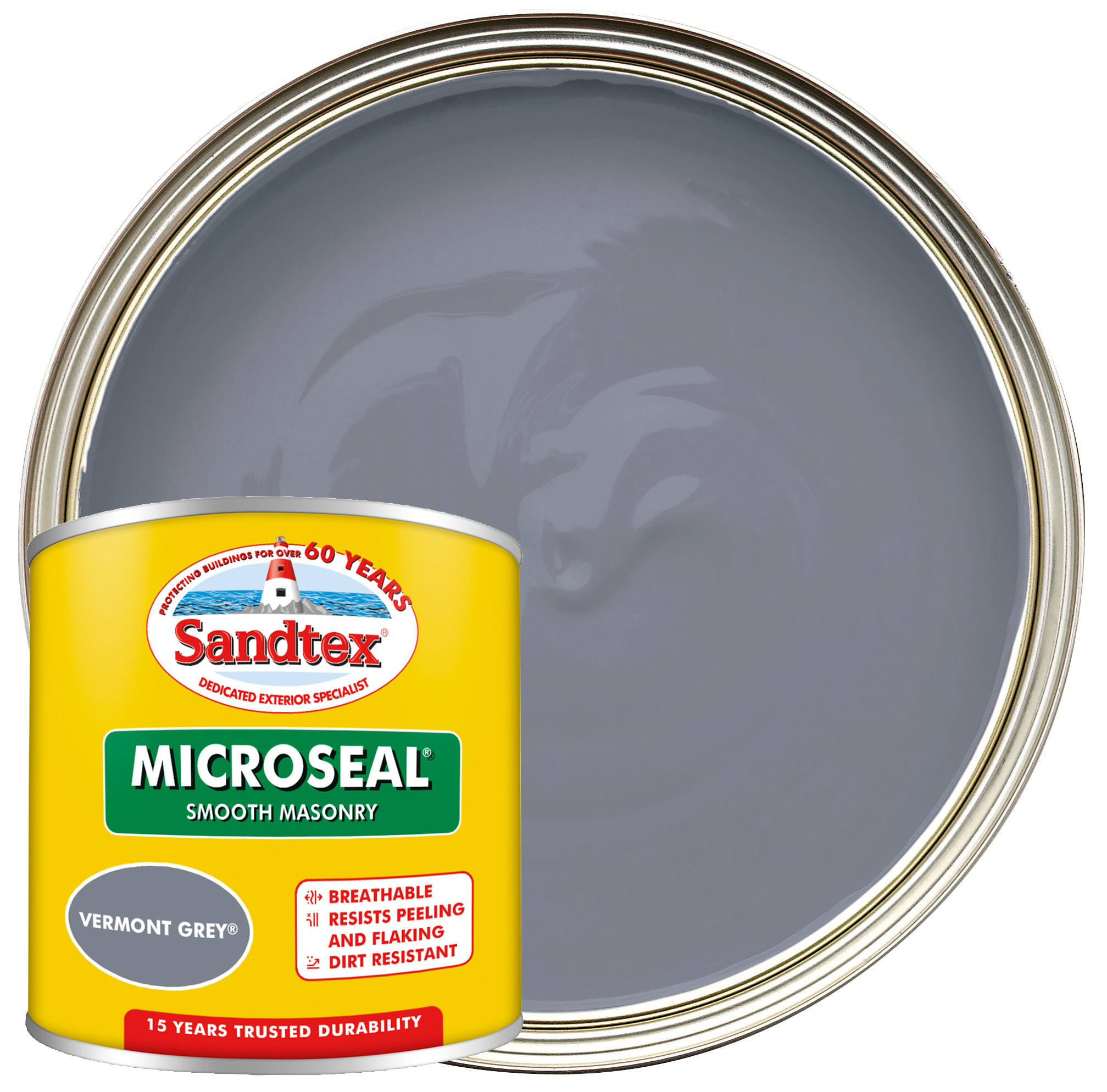 The Sandtex Microseal Ultra Smooth Weatherproof Masonry 15 Year Exterior Wall Paint is a durable and breathable exterior masonry paint that offers up to 15 years of weatherproof protection. Available in Vermont Grey, this unique shade of mid to dark grey masonry paint provides excellent versatility and complete coverage, making it the ideal exterior paint for the outside of your house.