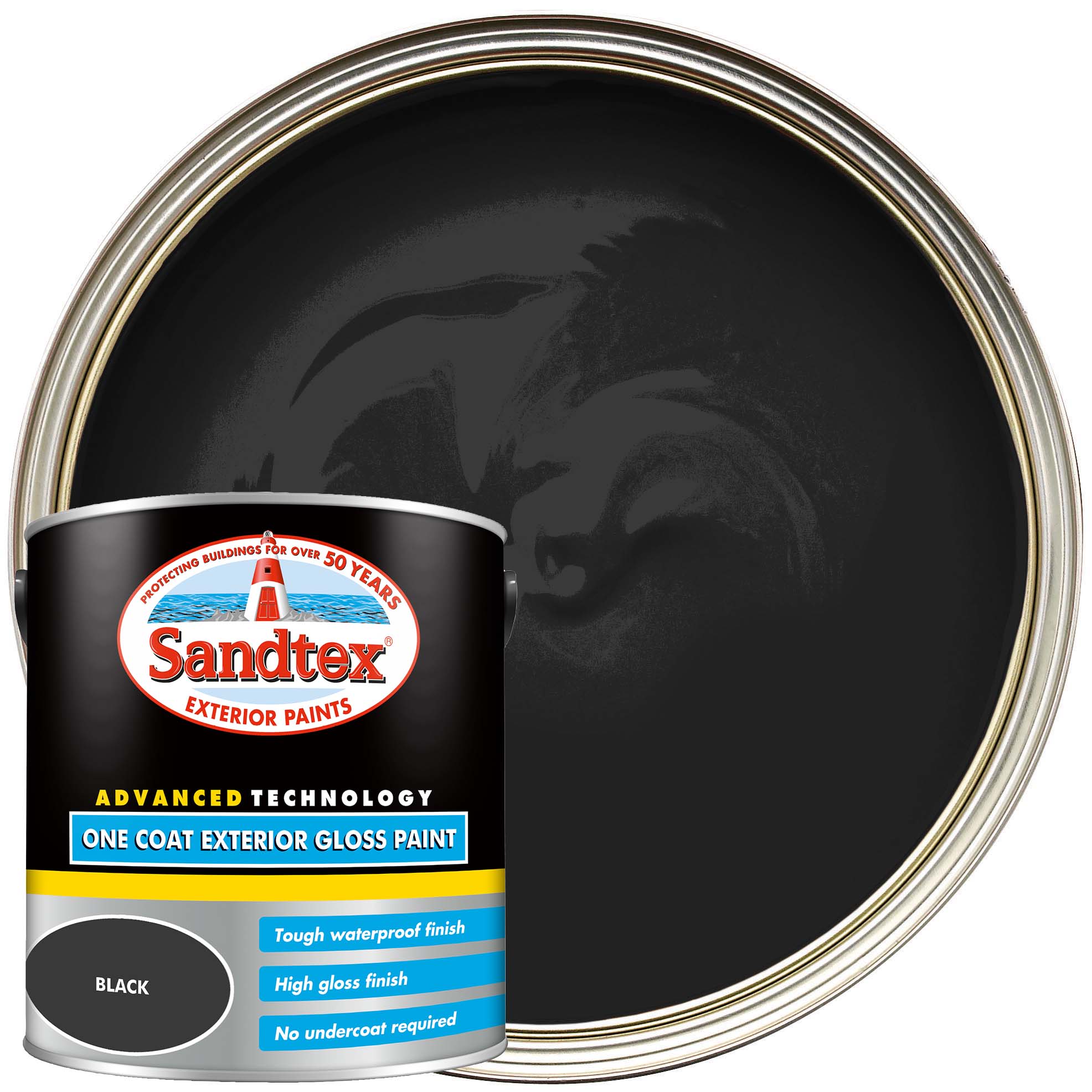 Sandtex One Coat Exterior Gloss Paint - Black - 2.5L