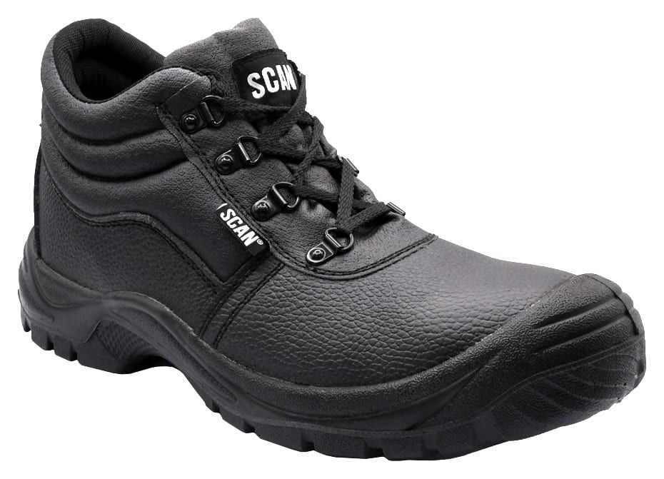 Scan Chukka Safety Boots have grained leather uppers offering excellent resistance against abrasion and are fitted with anti-static, energy absorbent polyurethane soles for comfort, strength and durability. The padded ankle collars provide additional comfort whilst the 200 Joule steel toecaps and midsole provide protection. The soles are resistant to oil, acid, alkaline, heat (180°C) and penetration. Conforms to EN ISO 20345 standard. Safety Rating: S1P with slip rating: SRC.