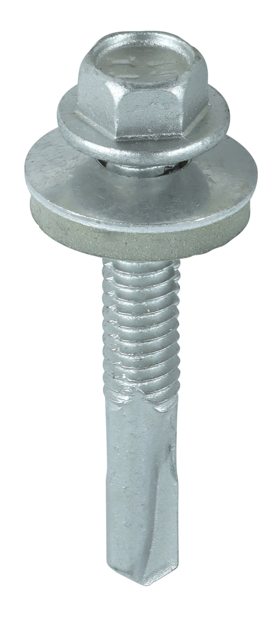 - Self-drilling point and tapered shank, with a washered hexagon head