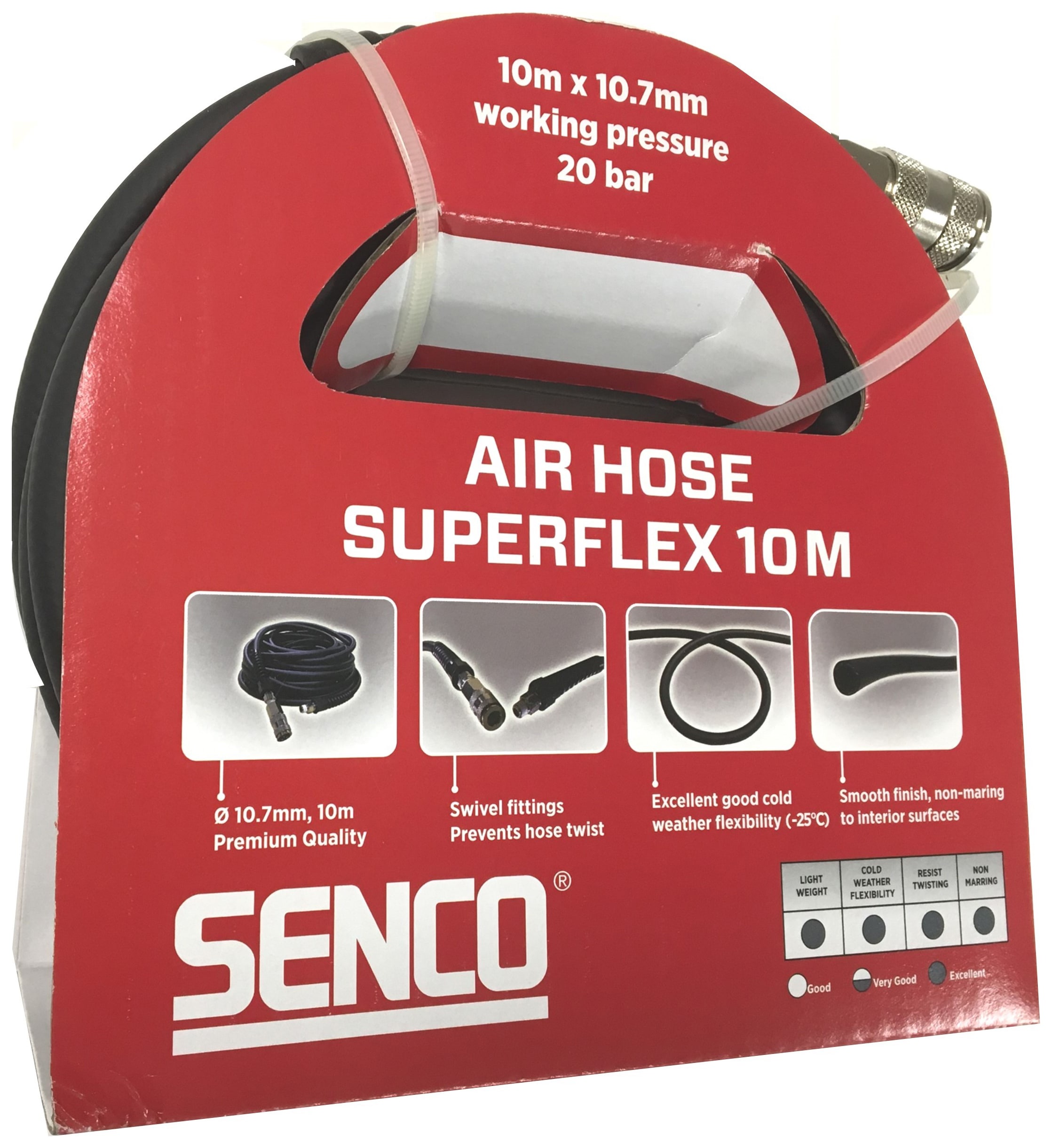 This Senco Hose is super flexible and features swivel fittings which help to prevent the hose from twisting. This 10-meter hose boasts a 10.7mm internal diameter and can withstand up to 20 bar pressure, and is compatible with CJEN fittings.