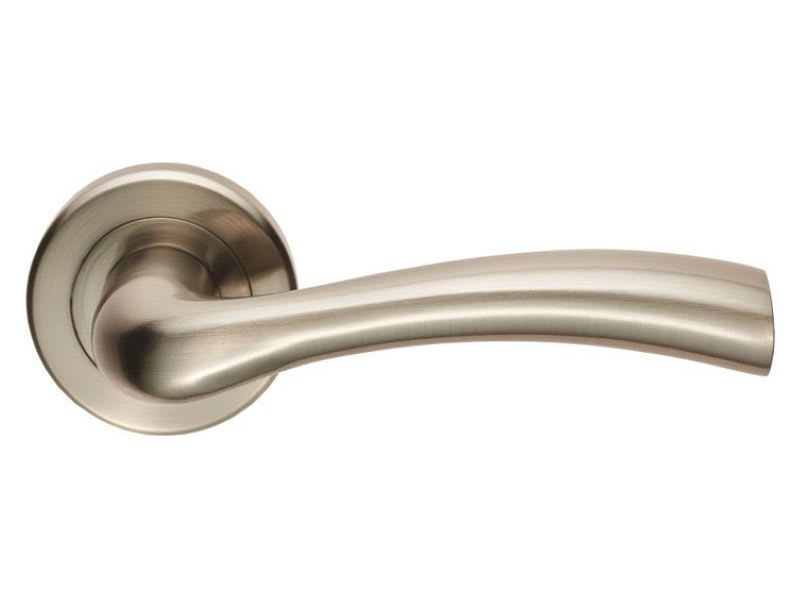 Lever on a chamfered edge concealed fix screw on round rose door handle. This trendy lever curves and flows to a broader end offering a stylish design for the ultra modernistic environment. An eye-catching and funky design. Part of the Serozzetta Residential range.
