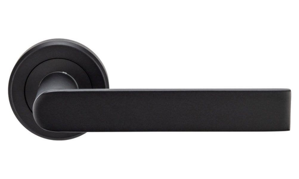 Lever on a concealed fix 2 part screw on round rose door handle. The flat and rectangular design of the lever allows for ergonomic use and is easy to grip. A heavy robust no nonsense lever design for a busy environment. The chamfered edge concealed fix rose reflects the attention to detail in this range. Fire door rated. Suitable for domestic and commercial use.