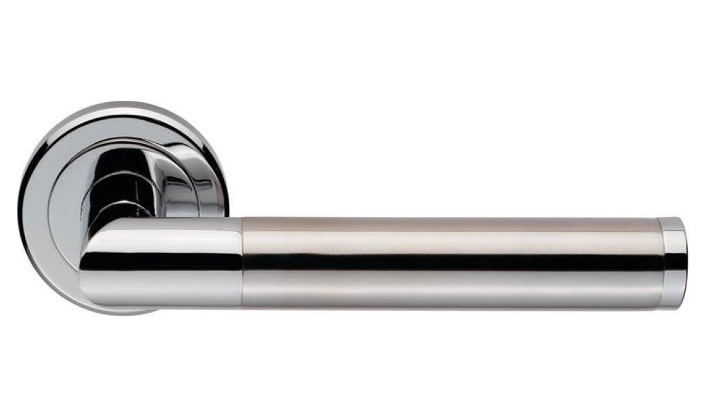 Lever on a concealed fix 2 part screw on round rose door handle. The Trend lever is a round bar sectional lever with a mitred corner. A favoured choice within the Serozzetta range, the timeless design is guaranteed to suit both the home and office environment. The chamfered edge concealed fix rose reflects the attention to detail in this range. Fire door rated. Suitable for domestic and commercial use.