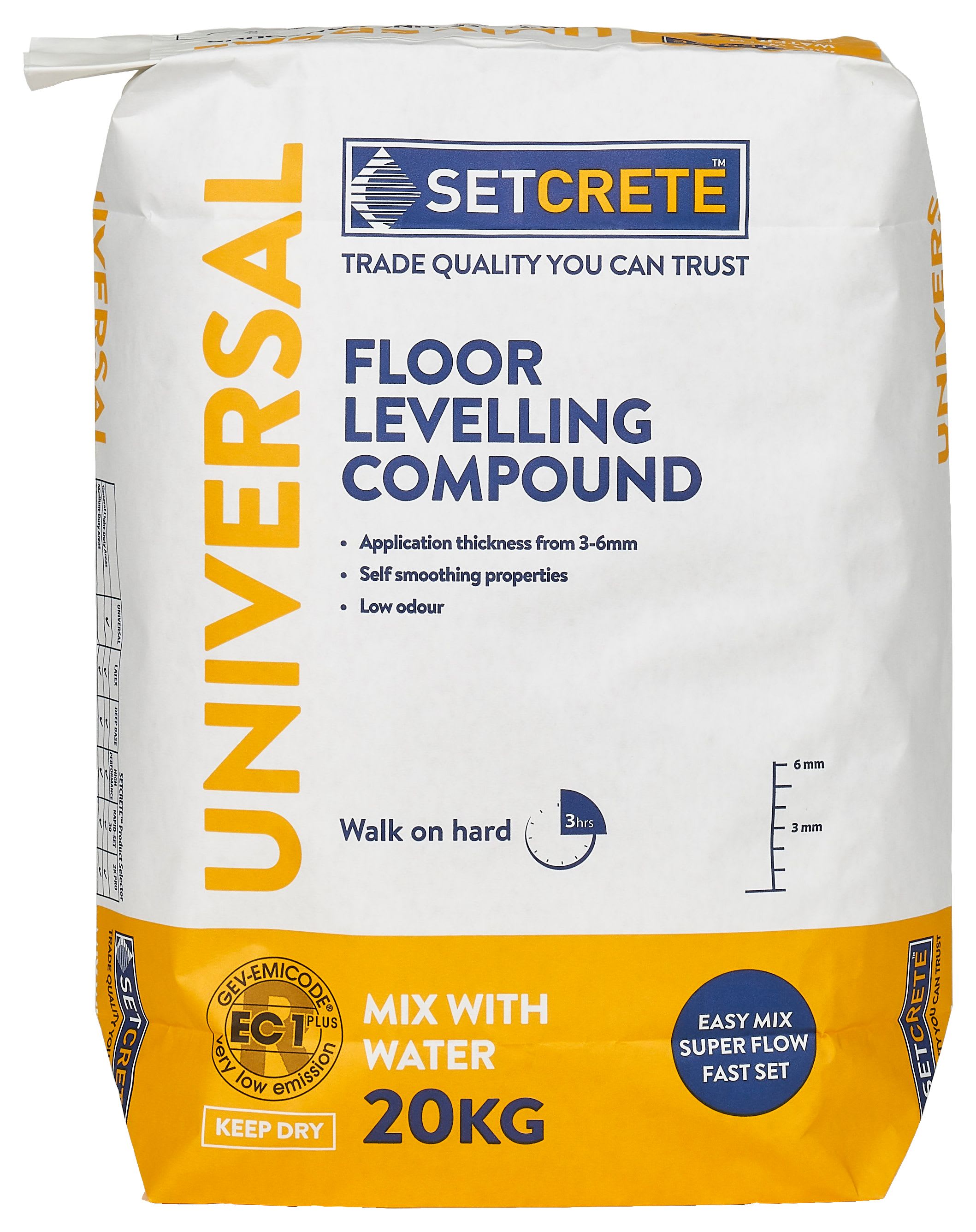 The Setcrete™ Universal Floor Levelling Compound is an easy to use floor levelling compound, that is suitable for use over a wide range of absorbent sub floors including sand/cement screed and concrete. It is designed for use prior to the installation of a floor covering, in areas of light foot traffic.