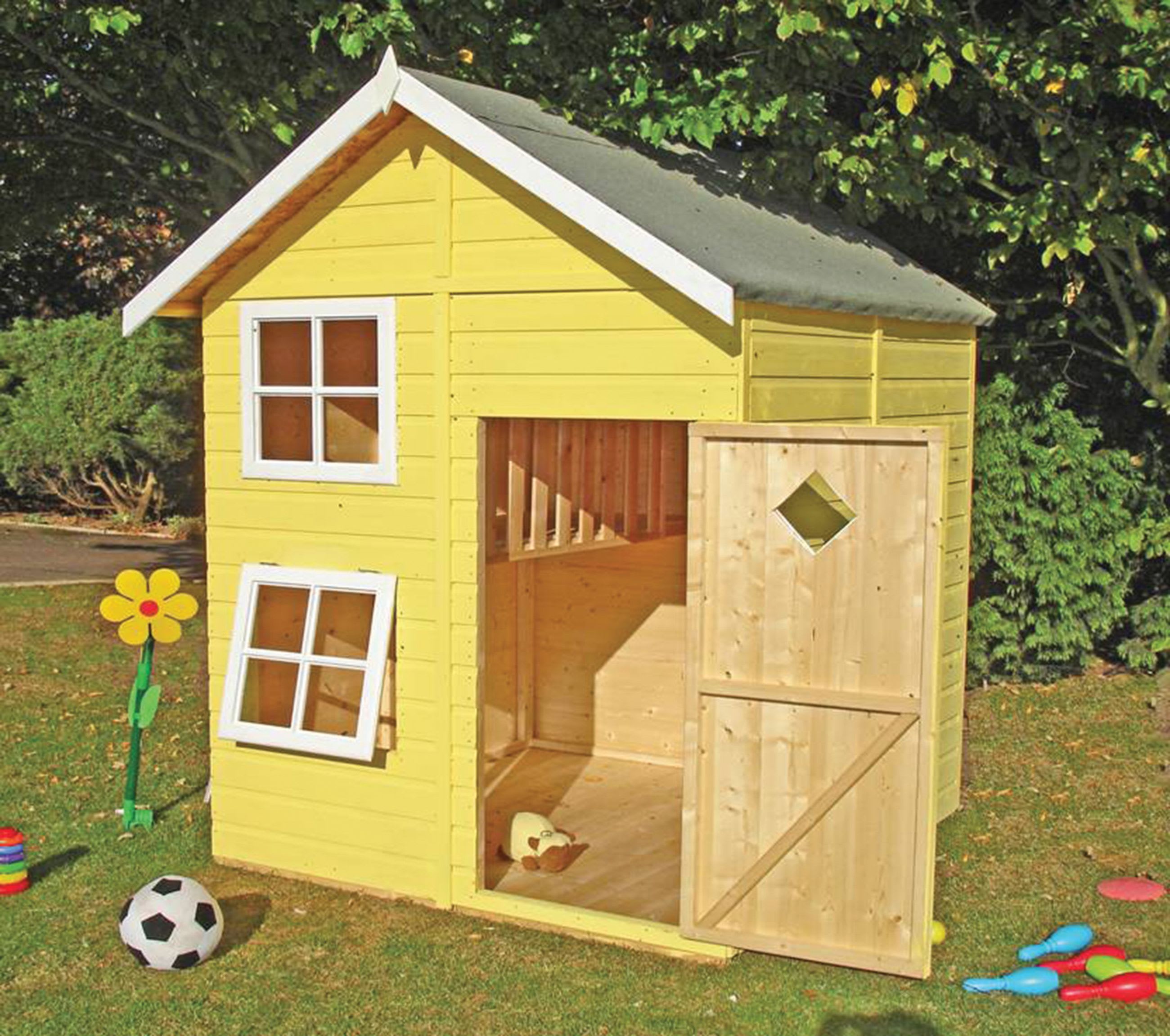 The Shire Croft and Bunk Split Level Wooden Playhouse features a charming cottage design for a smaller garden. Perfect for entertaining the children for hours on end in the summer months. Supplied in a dipped treated honey brown finish for extra durability and can still be painted in a colour of your choice. All fixings and instructions included.