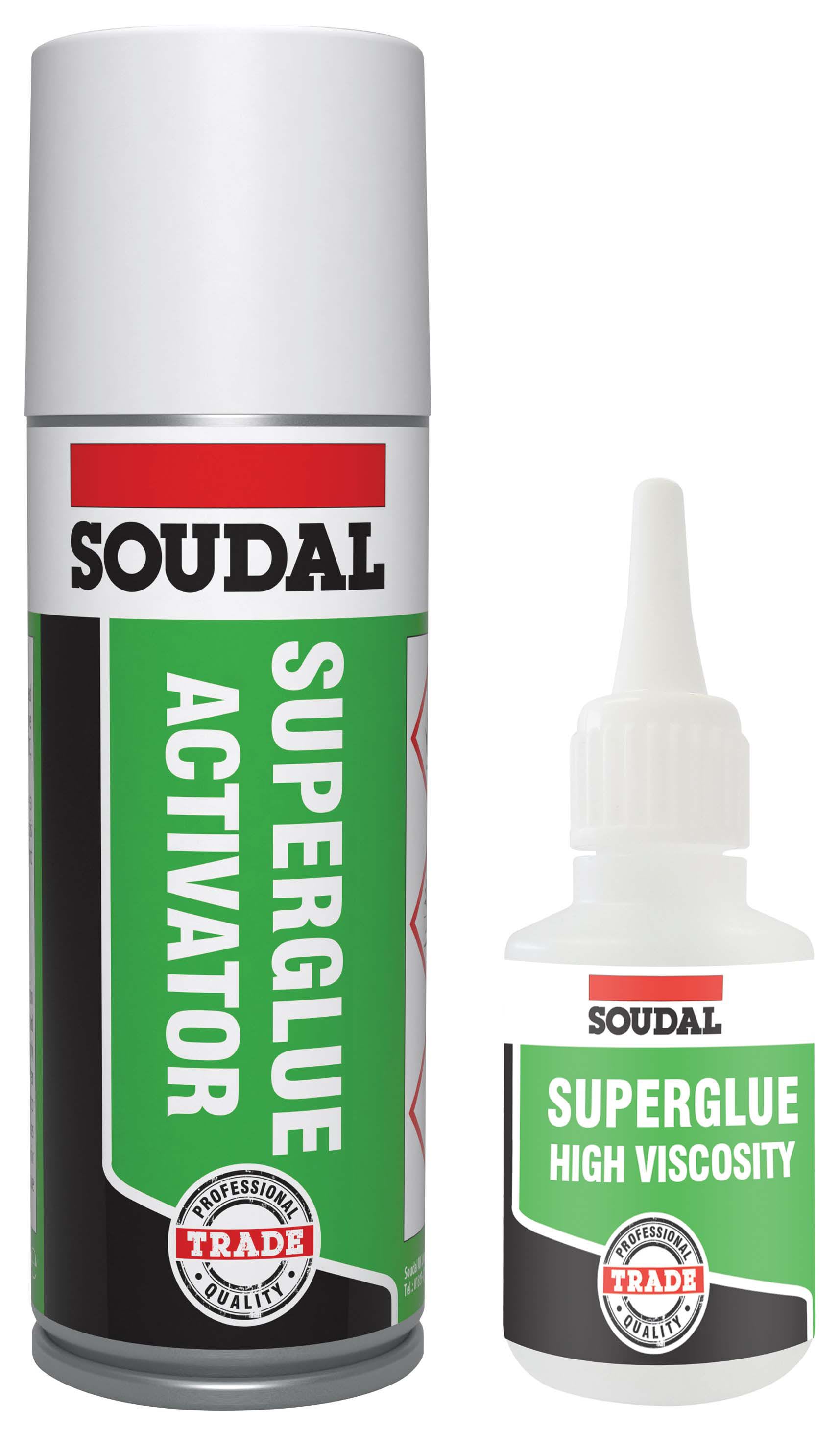 High viscosity super glue adhesive with aerosol activator. The instant bonding properties of the two-part system provide a rapid solution for the assembly of a broad range of materials. Apply superglue to one surface and the aerosol activator to the other surface for immediate bonding once joined. Suitable for bonding MDF, rubber, PVCu, metals and most plastics.
