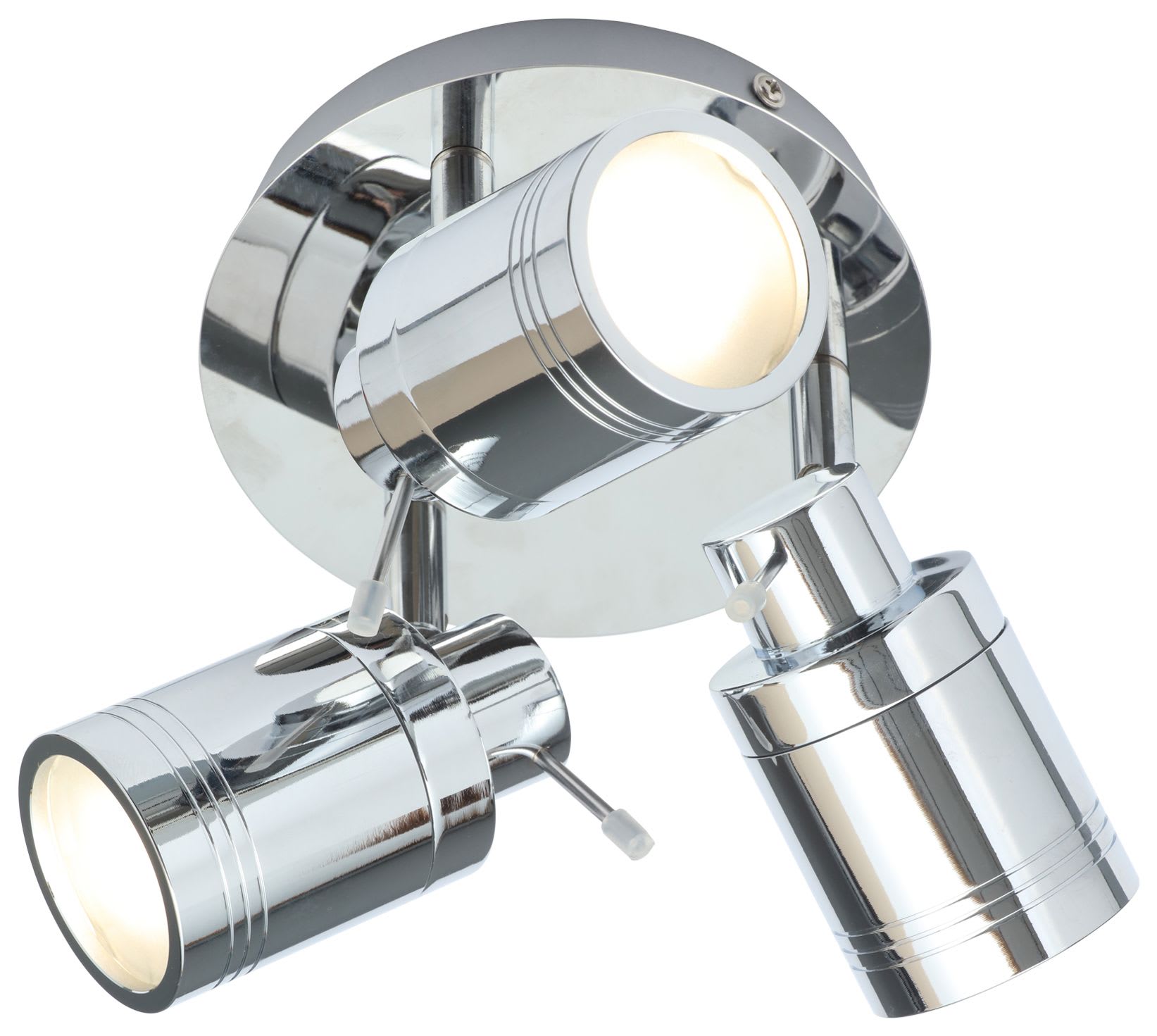 The Spa Scorpius Chrome Treble Ceiling Spot Light is made especially for the bathroom in a contemporary and modern polished steel. Requires 3 x 35w max GU10 halogen reflector bulbs (not supplied).