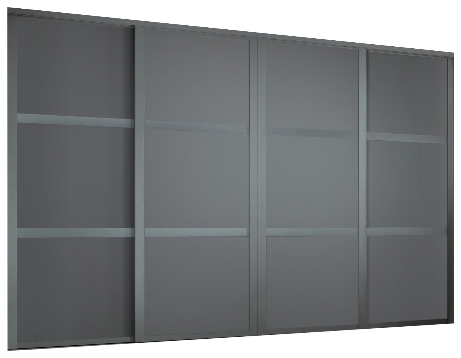 This Spacepro Shaker sliding door kit contains 4 graphite-framed 3 panel doors to create a striking, contemporary wardrobe. Easy to install, this kit can be fitted in just a couple of hours.