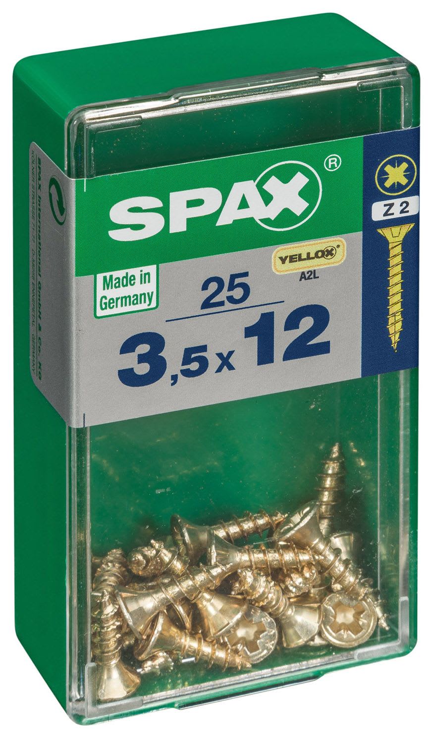 Spax PZ Countersunk Zinc Yellow Screws - 3.5 x 12mm Pack of 25