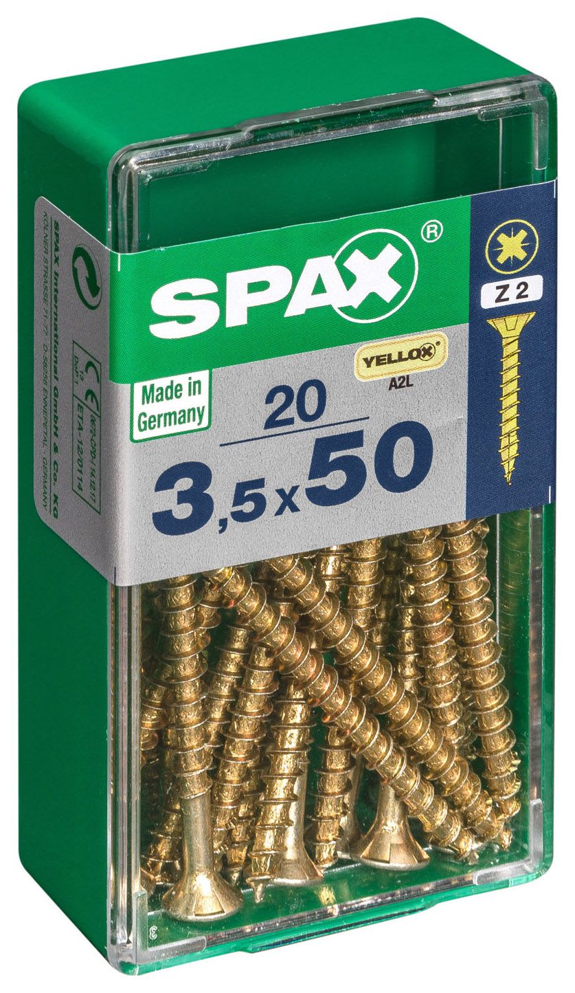 Spax PZ Countersunk Zinc Yellow Screws - 3.5 x 50mm Pack of 20