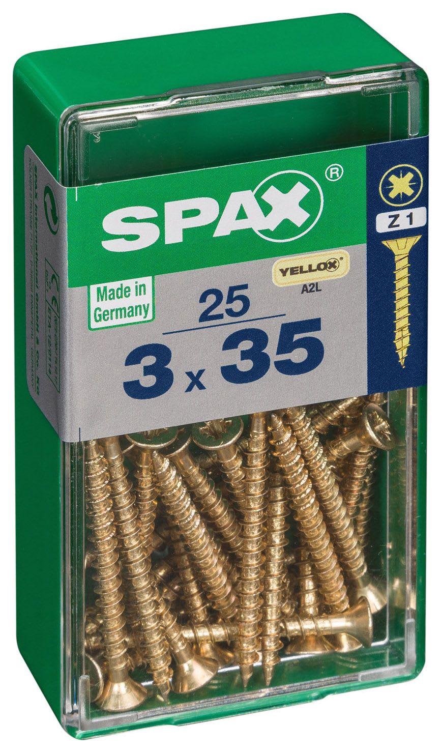 Spax PZ Countersunk Zinc Yellow Screws - 3 x 35mm Pack of 25