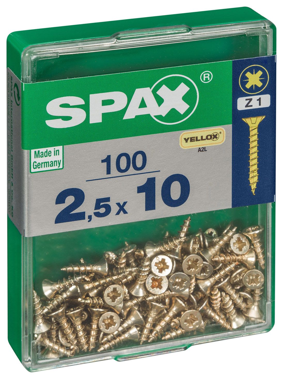 Spax Pz Countersunk Yellox Screws - 2.5x10mm Pack Of 100