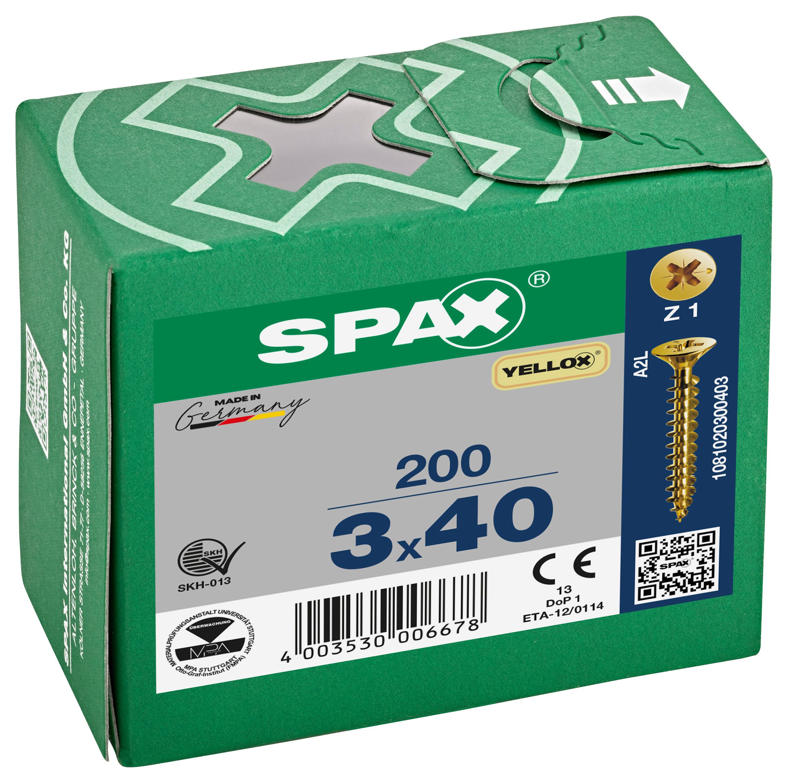 Spax Pz Countersunk Yellox Screws - 3x40mm Pack Of 200
