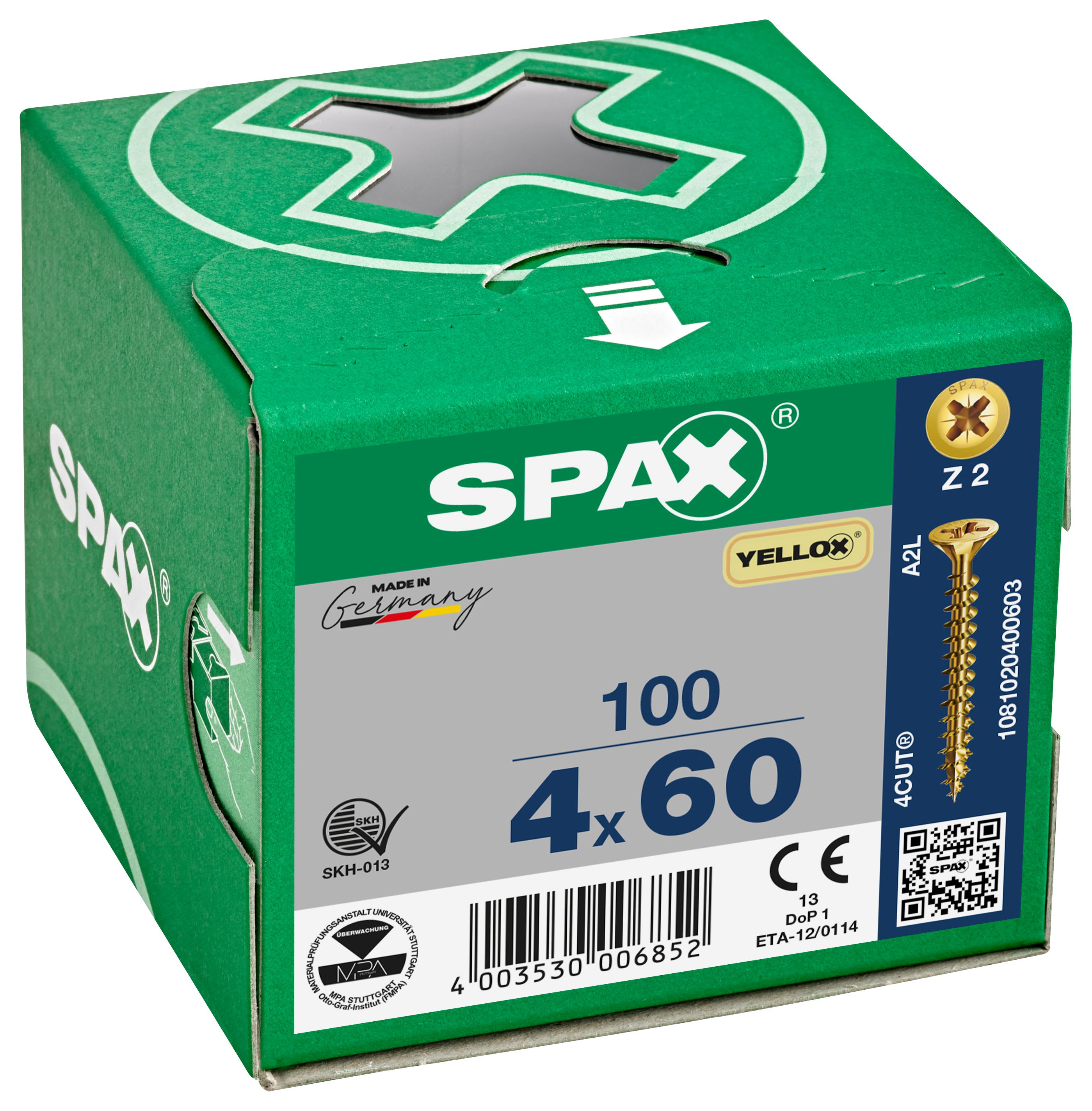 Spax Pz Countersunk Yellox Screws - 4x60mm Pack Of 100