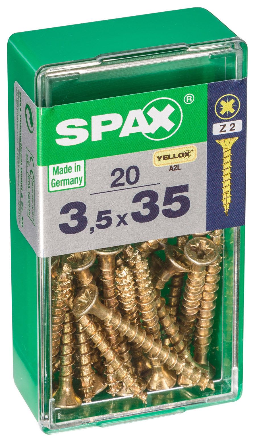 Spax Pz Countersunk Zinc Yellow Screws - 3.5 X 35mm Pack Of 20