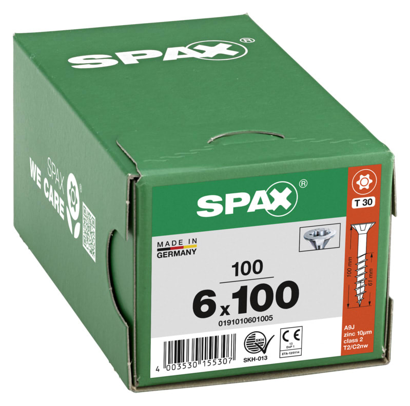 Spax Tx Countersunk Wirox Screws - 6x100mm - Pack Of 100