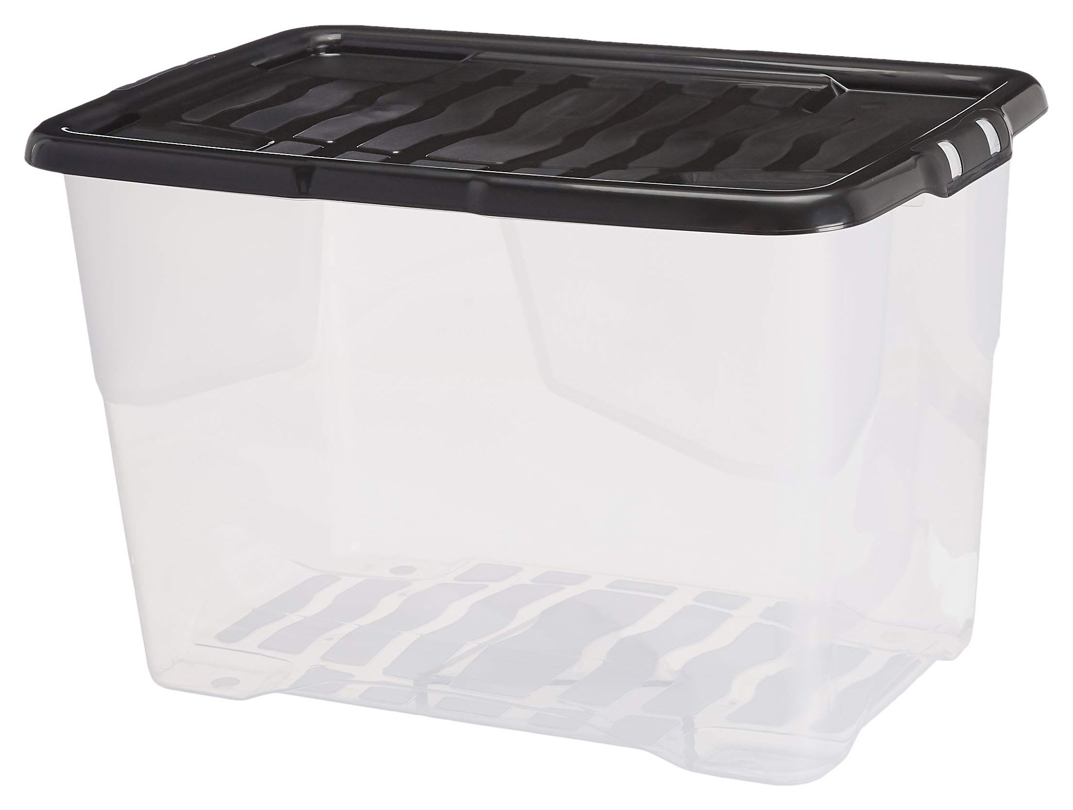 A good quality storage box with a black clip on lid. The clear base makes it easy to find what you need, fast.
