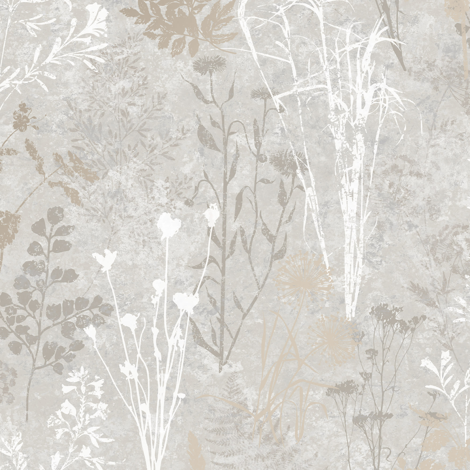 Organics features silhouettes of wildflowers and seedheads embellished with metallic, encapsulating the natural world and transporting it to your home interior. Organic Plain coordinates to give a four-wall finish.