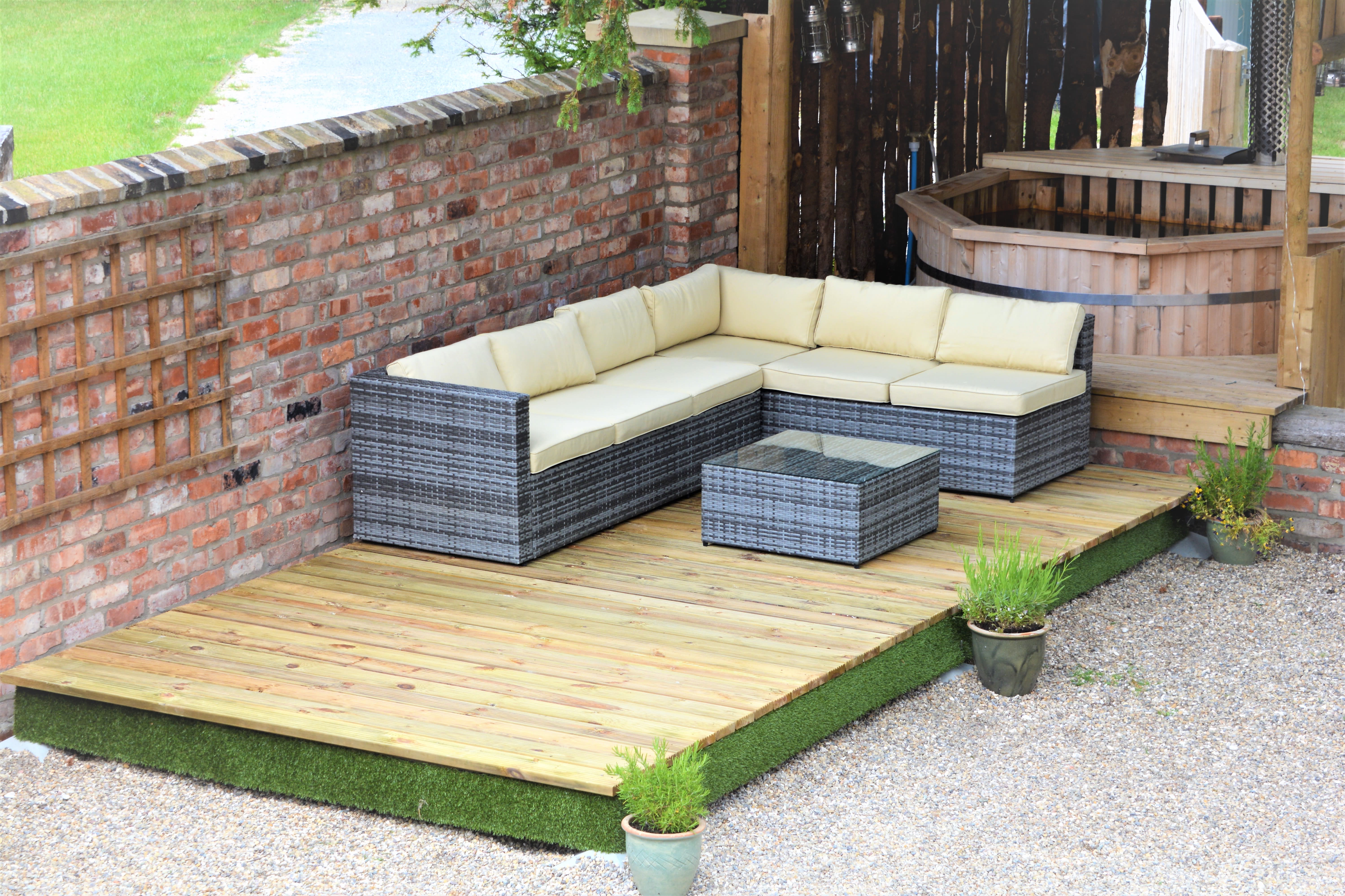 - Ready-to-use complete decking kit with 32mm thick decking boards