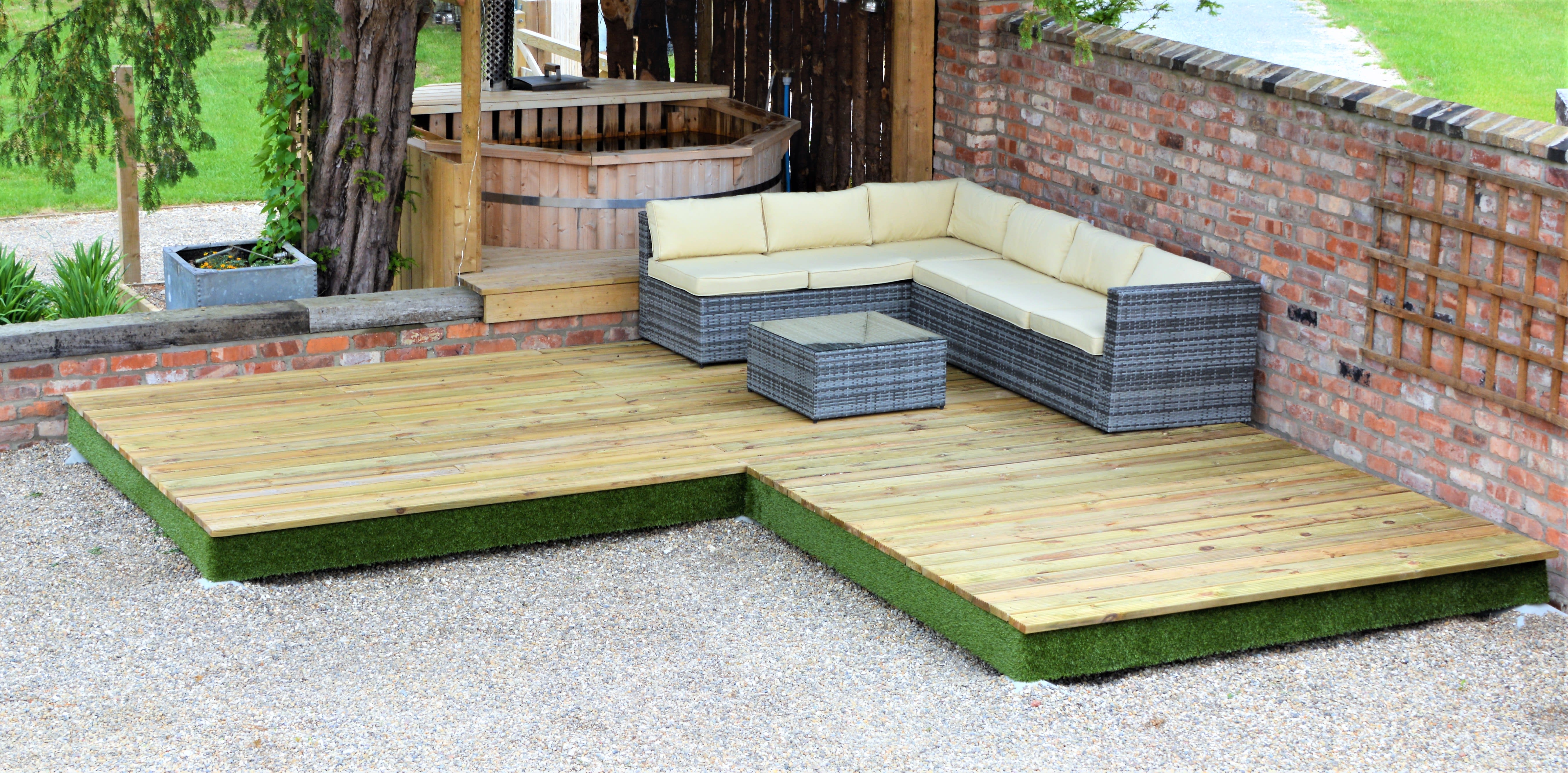 - Ready-to-use complete decking kit with 32mm thick decking boards