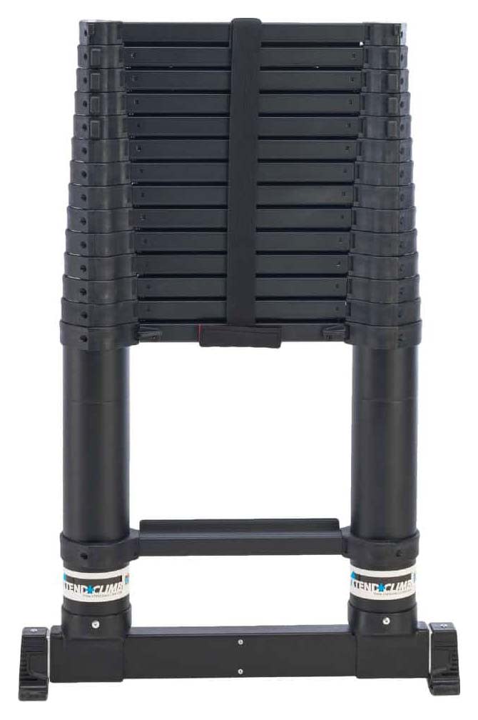 Latest Xtend+Climb SuperPro Series 2.0 4.4m telescopic ladder is our top-of-the-line model, designed for the most demanding professionals and fully compliant with EN131 Professional standards. It significantly improves upon the Pro Series with CNC-machined aluminium internal fittings for precise durability, unlike plastic alternatives. Presented in a matt-black finish that's both durable and easy to clean, it remains effortlessly portable. Featuring a Lightning Latch and auto-extending locking stabilising bar, it's easier to retract and offers greater stability at height. Fully compliant with EN131-6: 2019, this range is ideal for busy contractors seeking a robust, safe, and portable ladder.