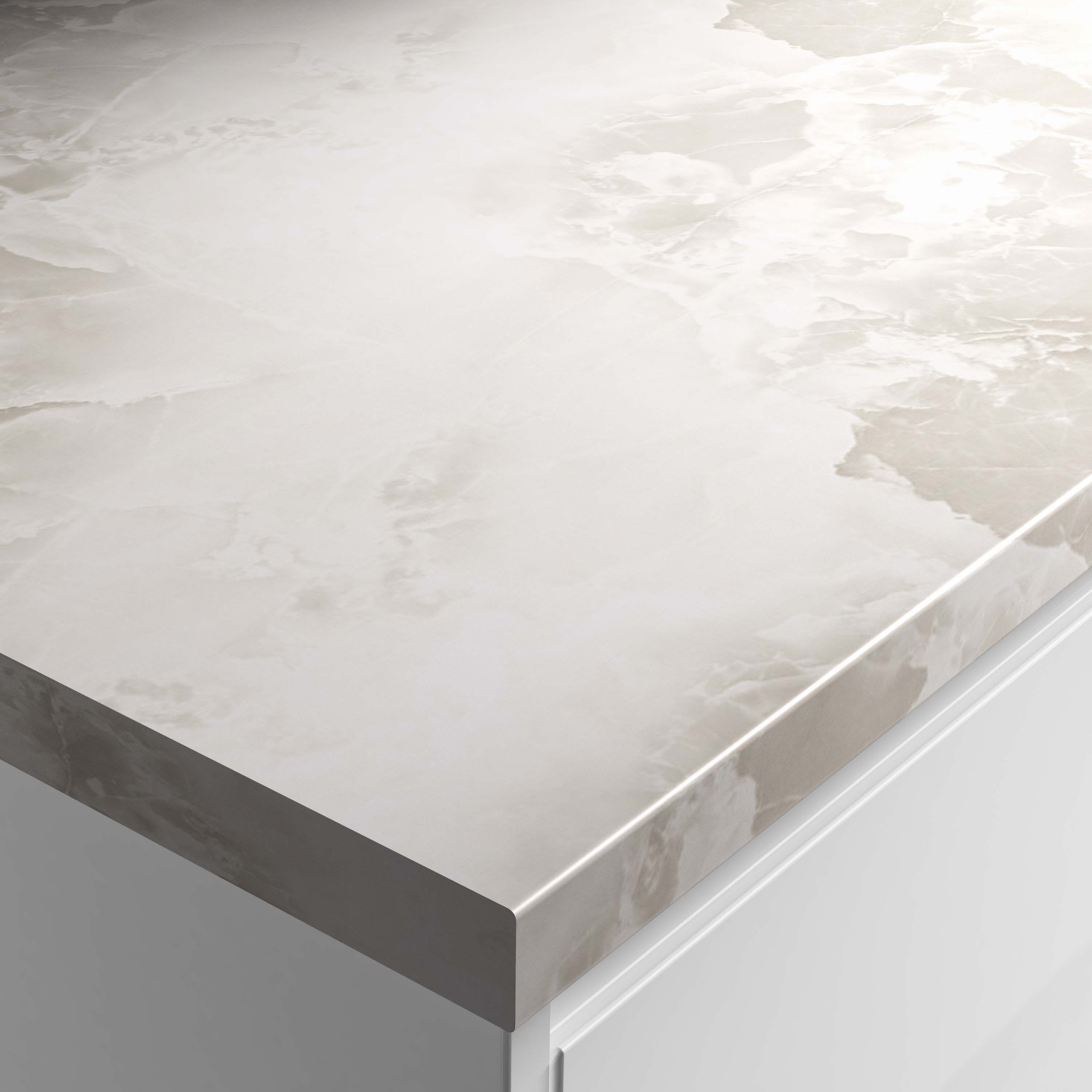 Terzo Stone is a grey marble effect designed to look realistic, with swirling clouds of white and cream, and depths of grey. Use the Terzo Stone upstand to complete the kitchen look: pair it with the 38mm thick Terzo Stone worktop and breakfast bar.