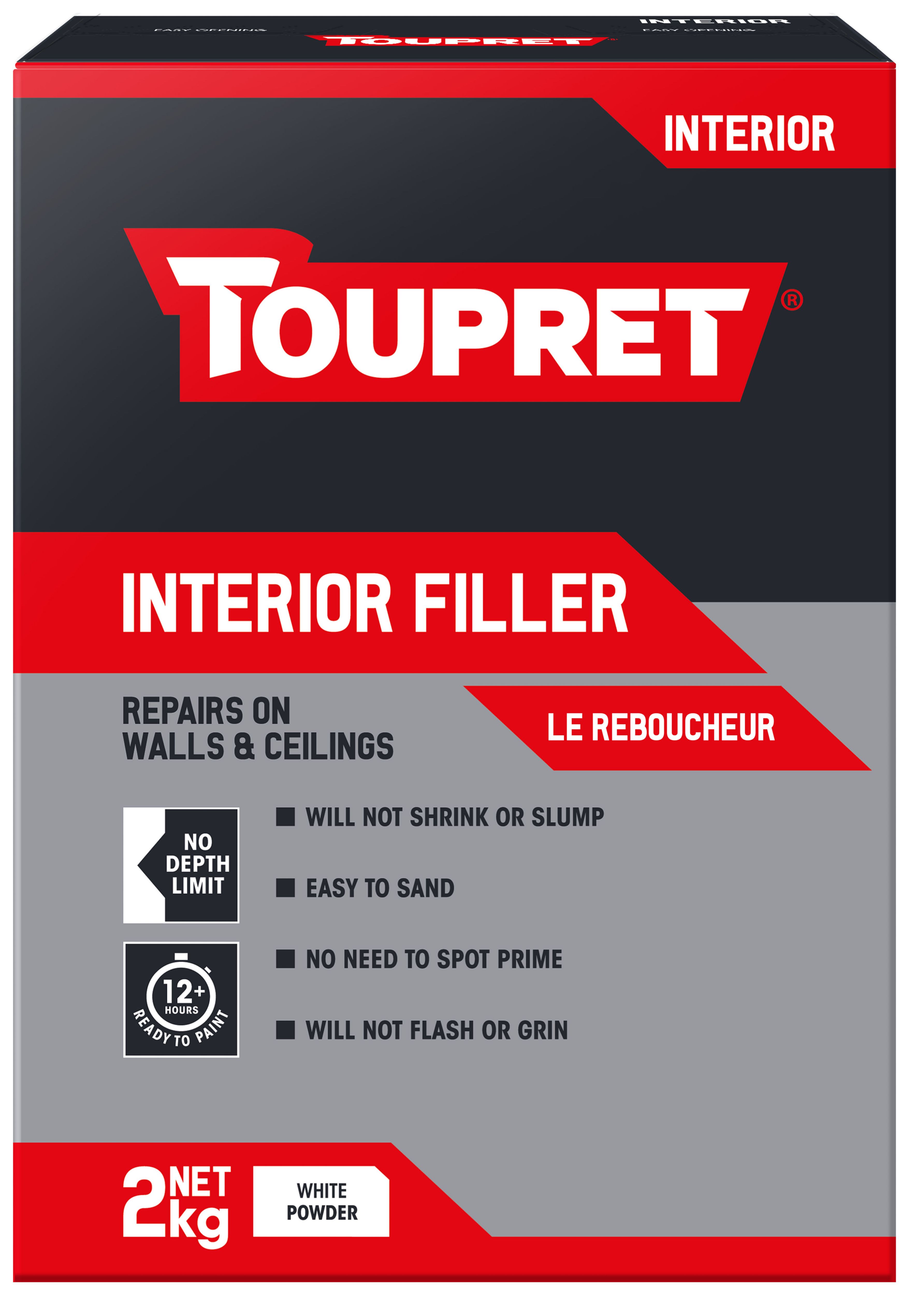 TOUPRET Interior Filler is a one coat powder filler and can be filled to any depth. With no need to spot prime, it's easy to sand and won't shrink, slump or show through paintwork. Suitable for internal use and sets in 30-40 minutes.