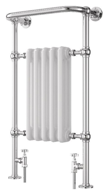 The Etiquette Designer Chrome/White Towel Radiator features a regal styled ball jointed chrome towel rail with a distinctive white multi column radiator. Designed specifically to air towels without compromising performance. Available in tall and slimline sizes and supplied with all fixtures and fittings.