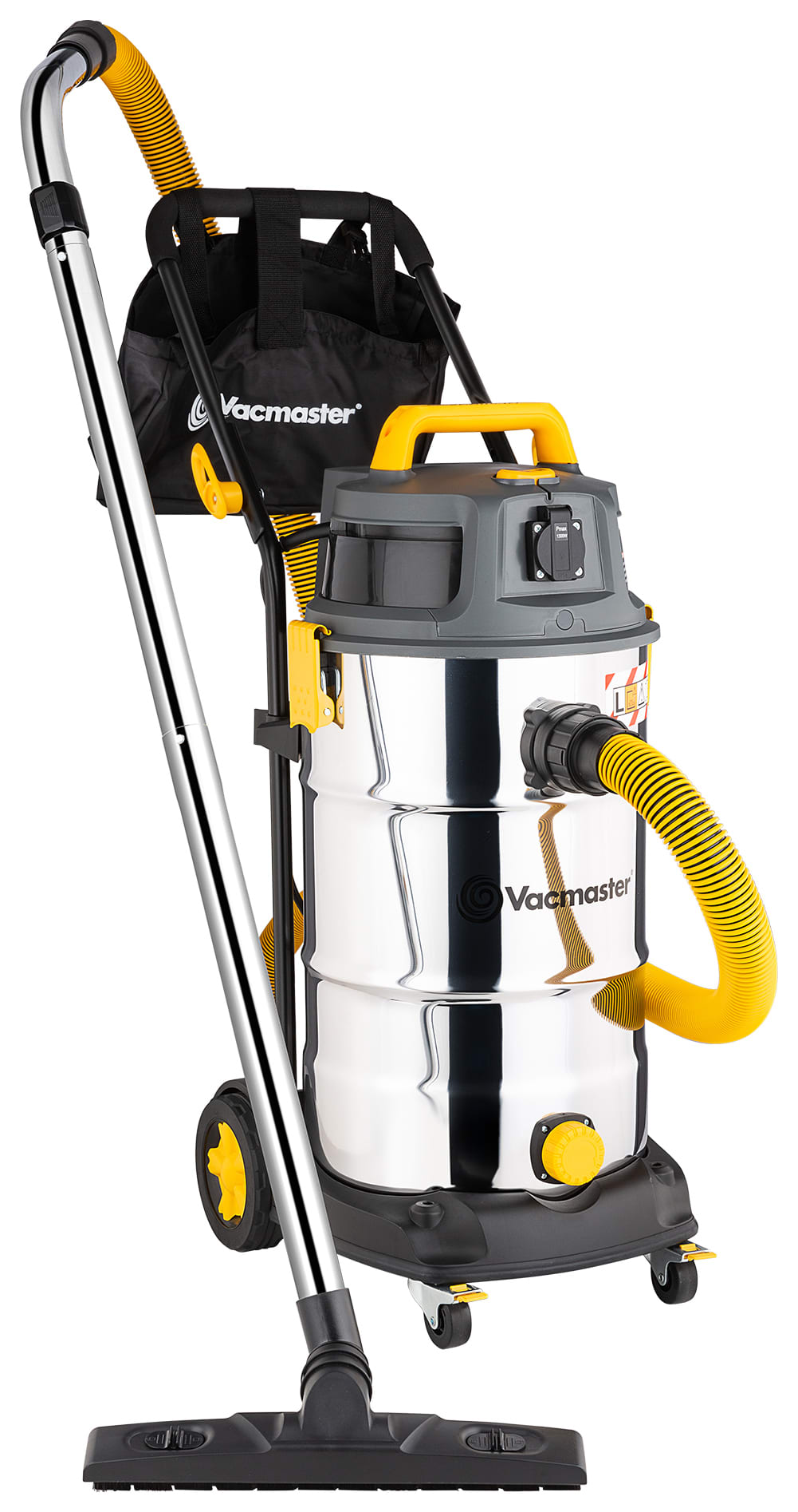The VK1638SWC-01L is one of Vacmaster's most powerful wet and dry vacuum cleaners, the Vacmaster VK1638SWC-01L WD L38 generates 260 air watts from a 1600W high-performance Twin Fan motor. With a class L certification for HSE government workplace exposure limits, the WD L38 is designed to protect operators exposed to low toxicity, harmful dusts that are greater than 1 milligram per cubic metre. The HEPA cartridge filter, HEPA post-motor filter, washable pre-filter and Hygiene Seal Dust Bag provides one of the highest rated HEPA filtration systems on the market. Capturing at least 99.95% of microscopic dust and allergen particles, down to 0.3 microns. Each element of the WD L38's construction has been engineered for heavy duty use, with the tank, suction tubes, castors and fittings all moulded from thick-skinned stainless steel. The cable is reinforced with toughened PVC and even the larger 38mm hose is crush resistant. And because it’s designed by Vacmaster, it’s as versatile as it is durable. Capable of switching between wet and dry extraction, it can capture everything from fine cement dust, to bulky rubble, to litres of defrosted water from industrial sized freezers. What’s more, it also comes with an integrated power take-off socket.