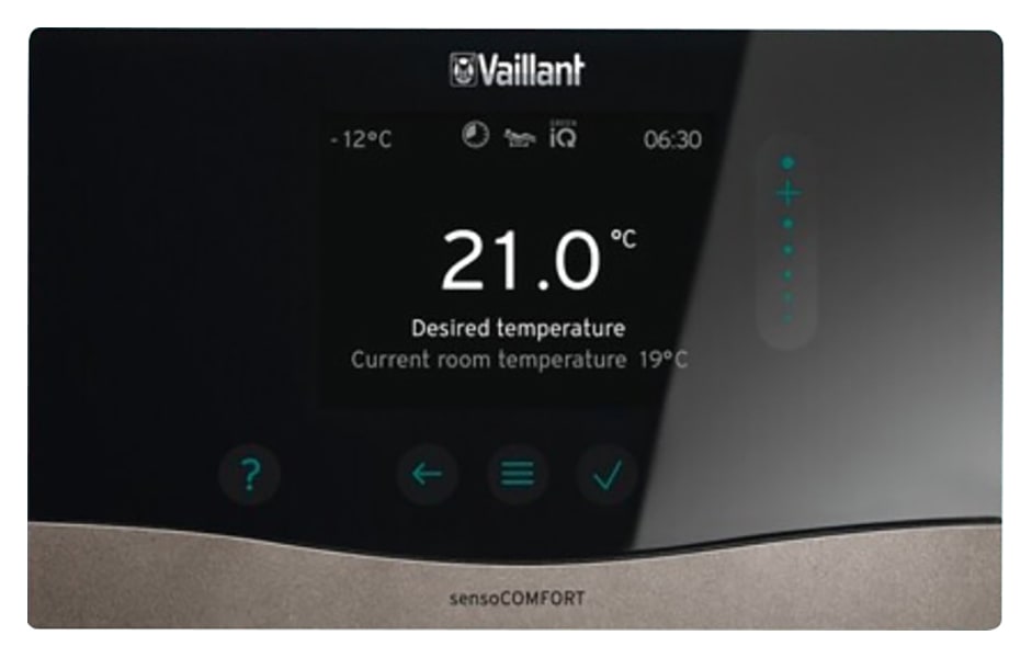 Vaillant SensoCOMFORT VRC 720 Thermostat allows you to control a combination boiler with one wired or wireless heating zone and control everything from a single programmable thermostat.