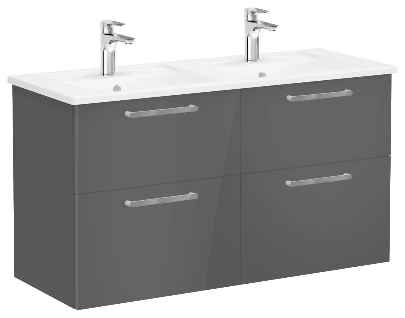 VitrA Avery Storm Grey Wall Hung Vanity Unit & Double Basin - 1200 x 670mm