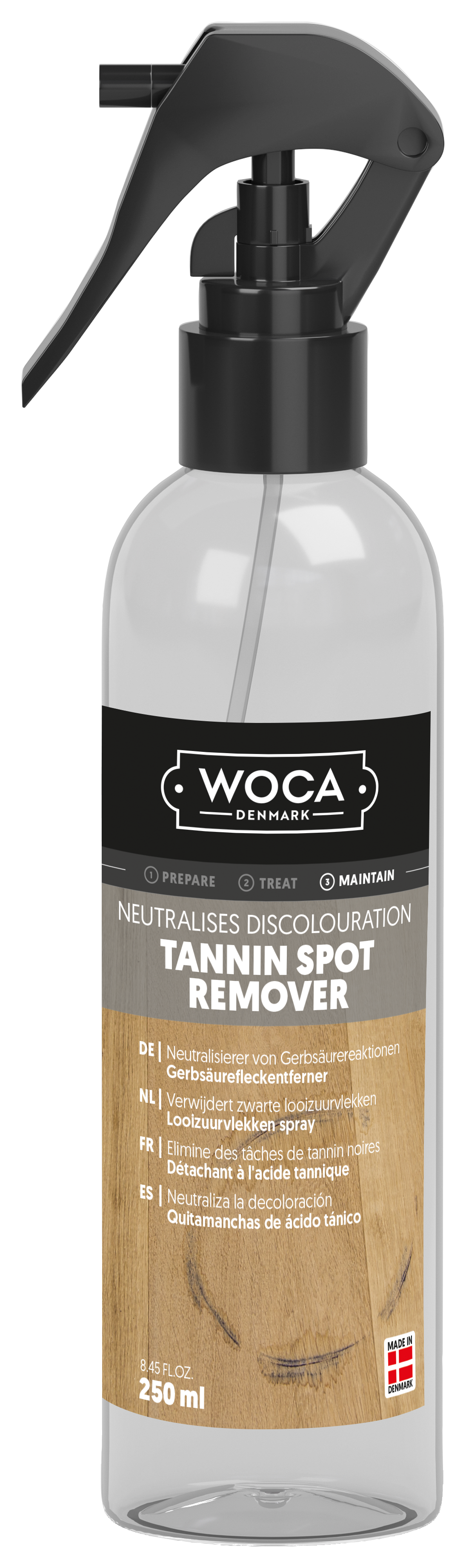 Tannin Spot Remover effectively removes black spots caused by tannin/water reaction on interior wood surfaces without any harsh or bleaching chemicals.