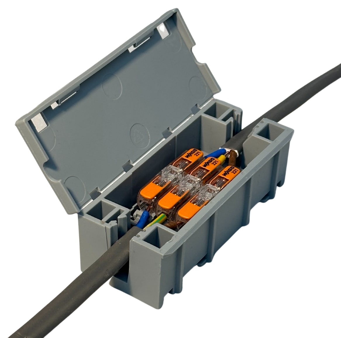 - Junction box enclosure designed for use with WAGO 221-24 and 224 series connectors (connectors not included)