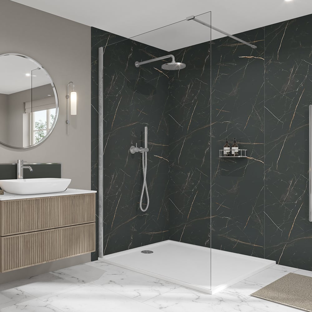 The Wetwall Elite Collection Single Shower Panel will add an exquisite touch of class to your bathroom decor. Elite panels are made using our unique waterproof core, trims are not required. This means you can create a smooth, uniform, seamless finish throughout your bathroom.