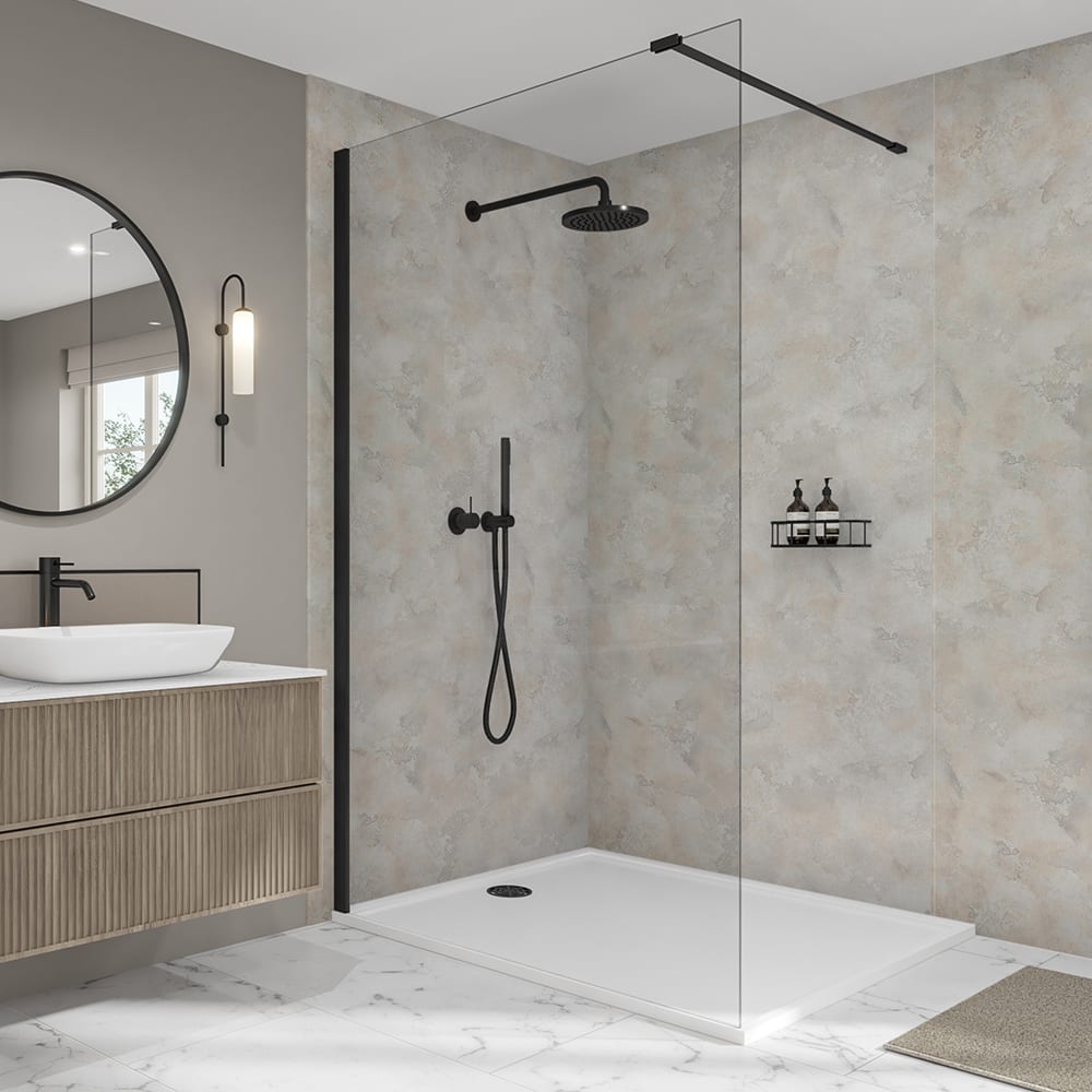 The Wetwall Elite Collection 2 Sided Shower Panel Kit will add an exquisite touch of class to your bathroom decor. Elite panels are made using our unique waterproof core, trims are not required. This means you can create a smooth, uniform, seamless finish throughout your bathroom.